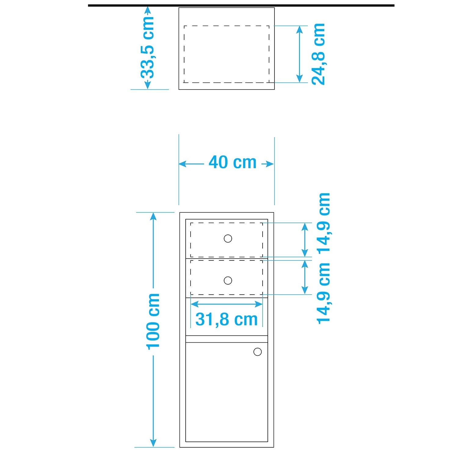 - Dimensions intérieures du tiroir : LxHxP : 31,8 x 14,9 x 24,8 cm