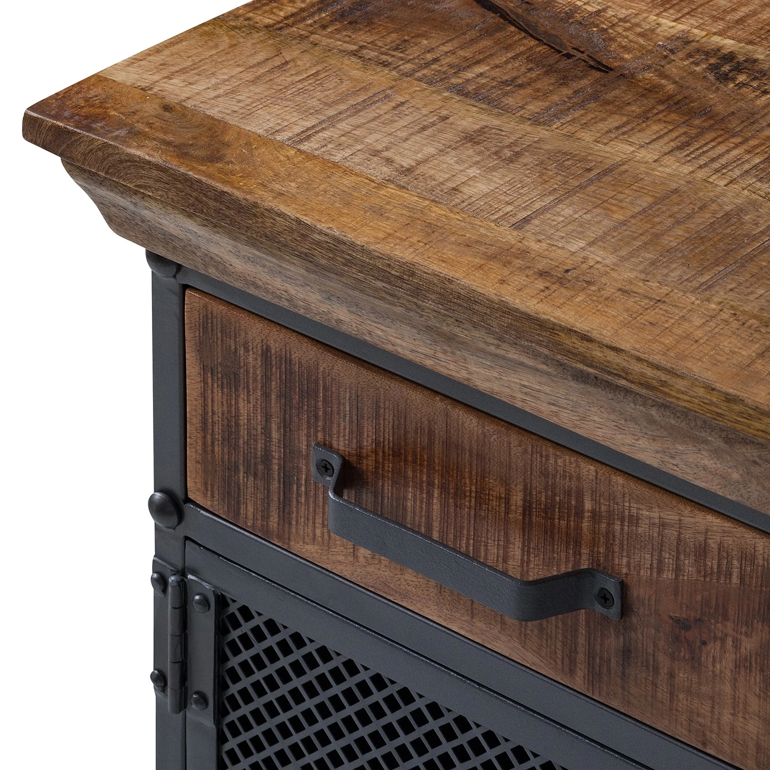 - Plateau, façade du tiroir et socle : manguier massif, verni