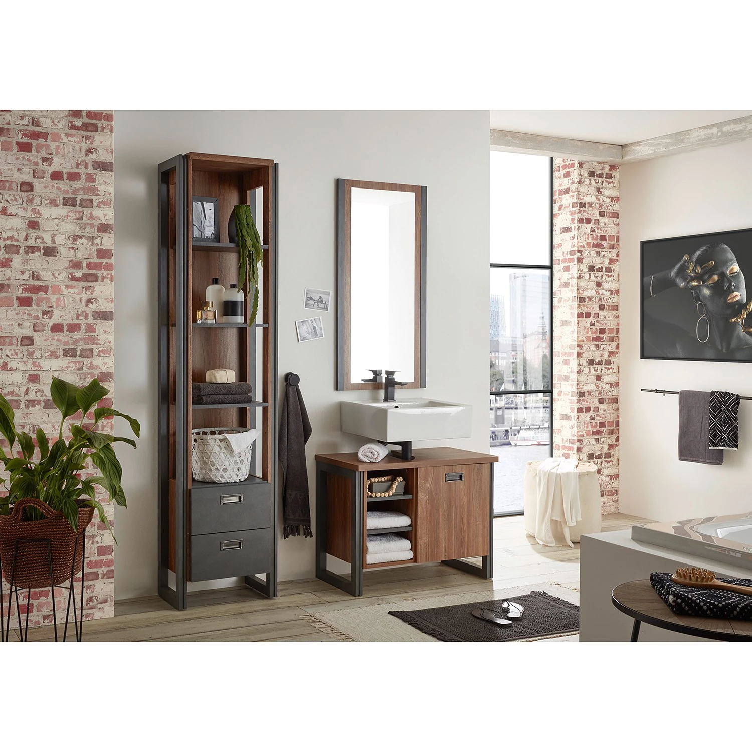 - Contenu de la livraison : Salle de bain comprenant 1 meuble sous lavabo, 1 étagère et 1 miroir