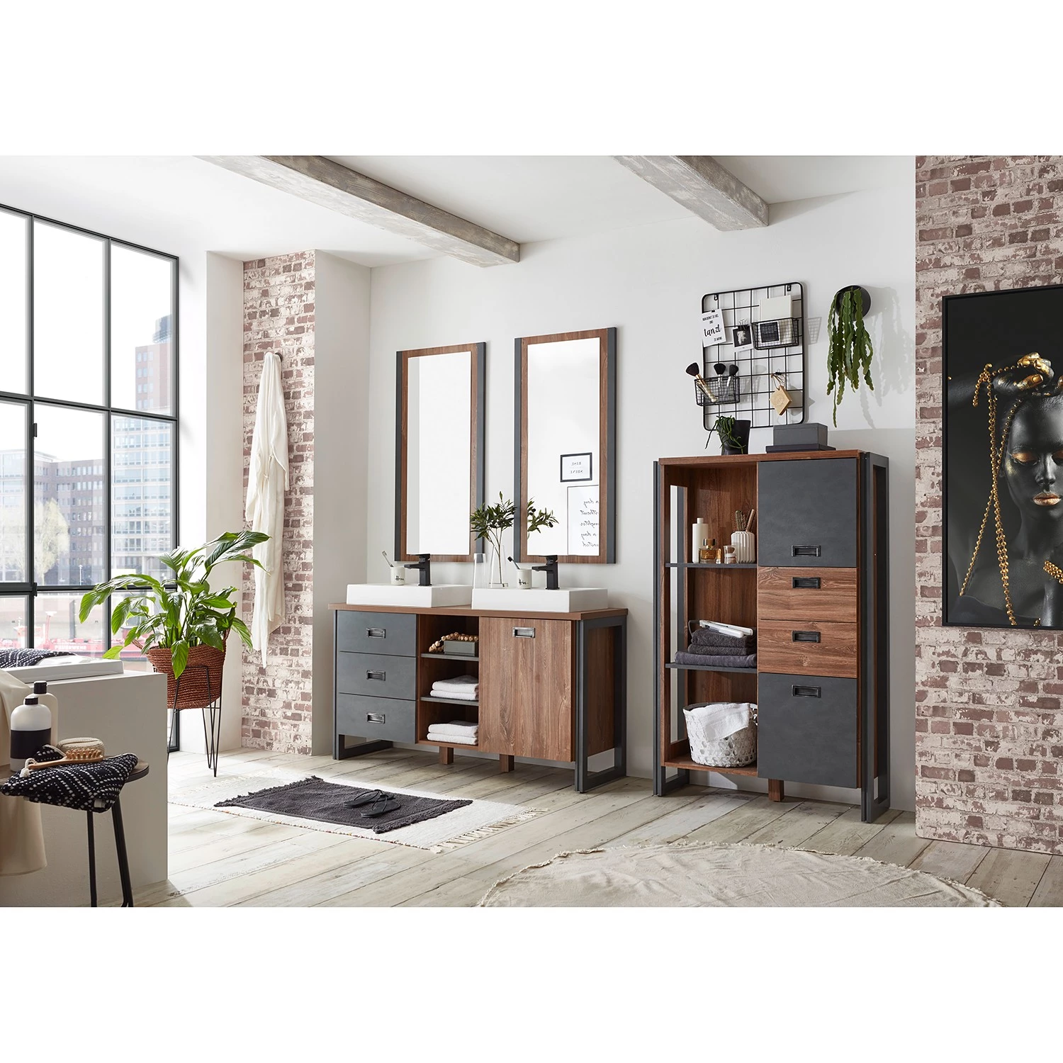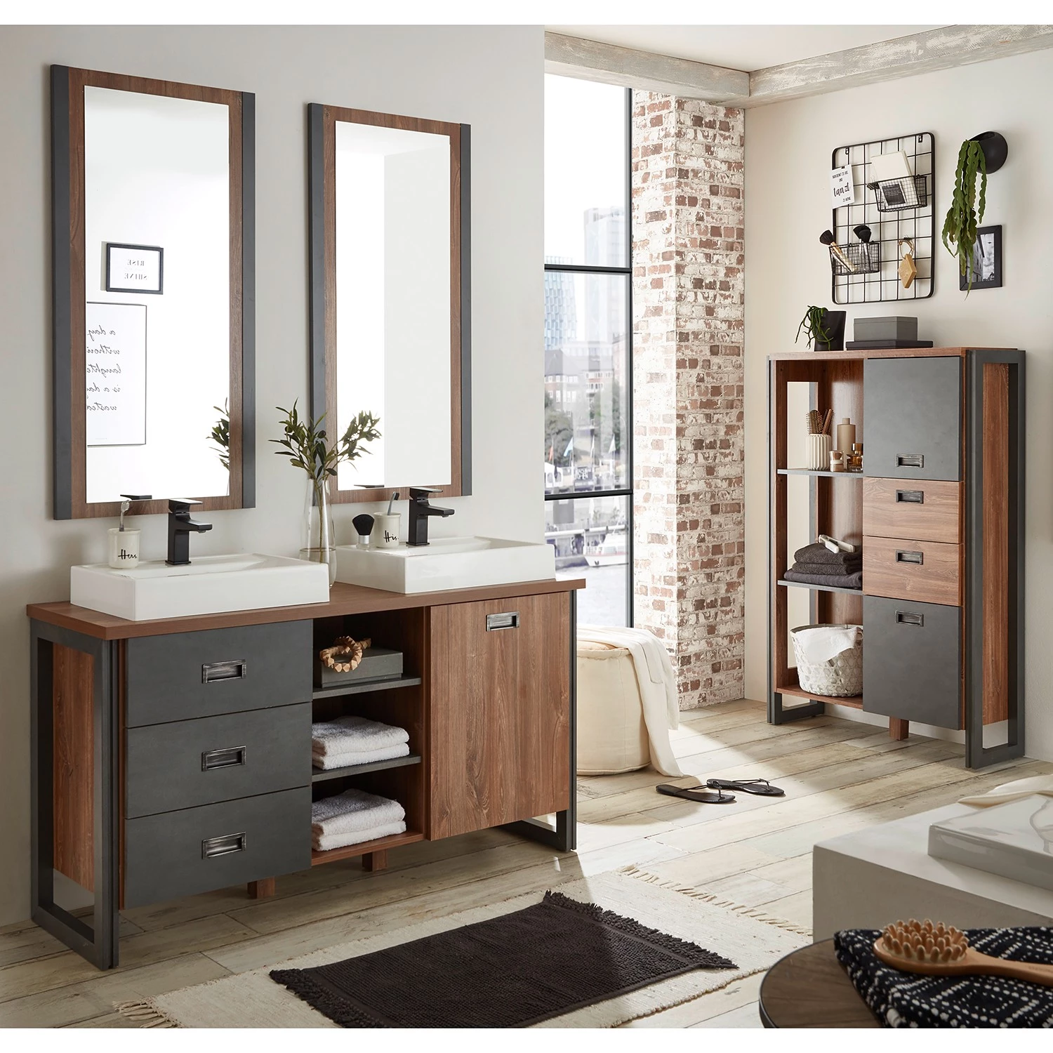- Contenu de la livraison : Salle de bain comprenant 1 meuble double vasque en fonte minérale, 1 colonne de salle de bain et 2 miroirs