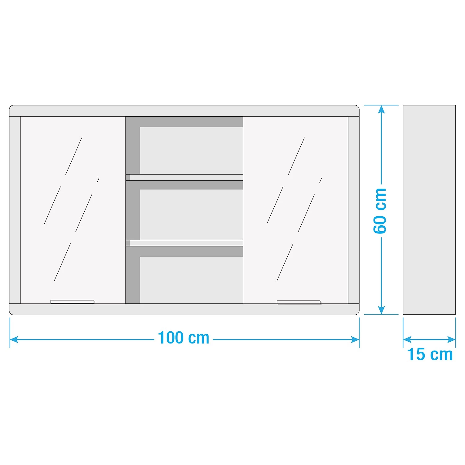 - Armoire de toilette (L x H x P) : 100 x 60 x 15 cm