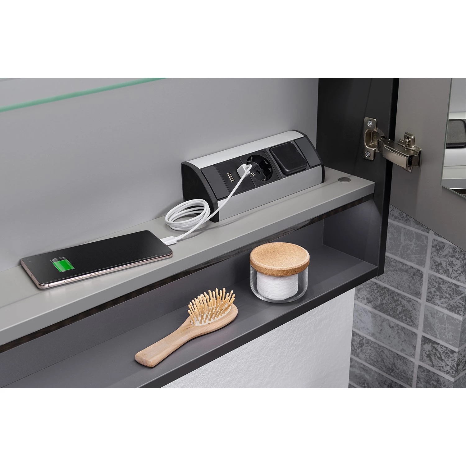 - Contenu de la livraison : Armoire de toilette avec éclairage LED, interrupteur, prise et port USB
