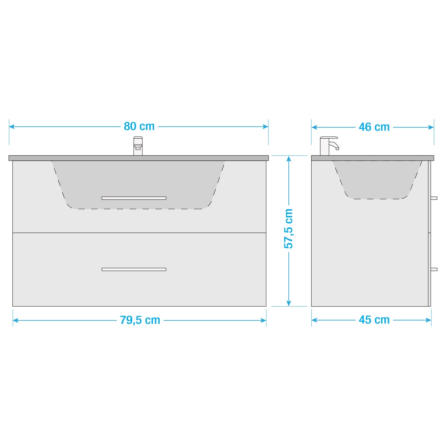 - Meuble sous lavabo (LxHxP) : 79,5 x 57,5 x 45 cm