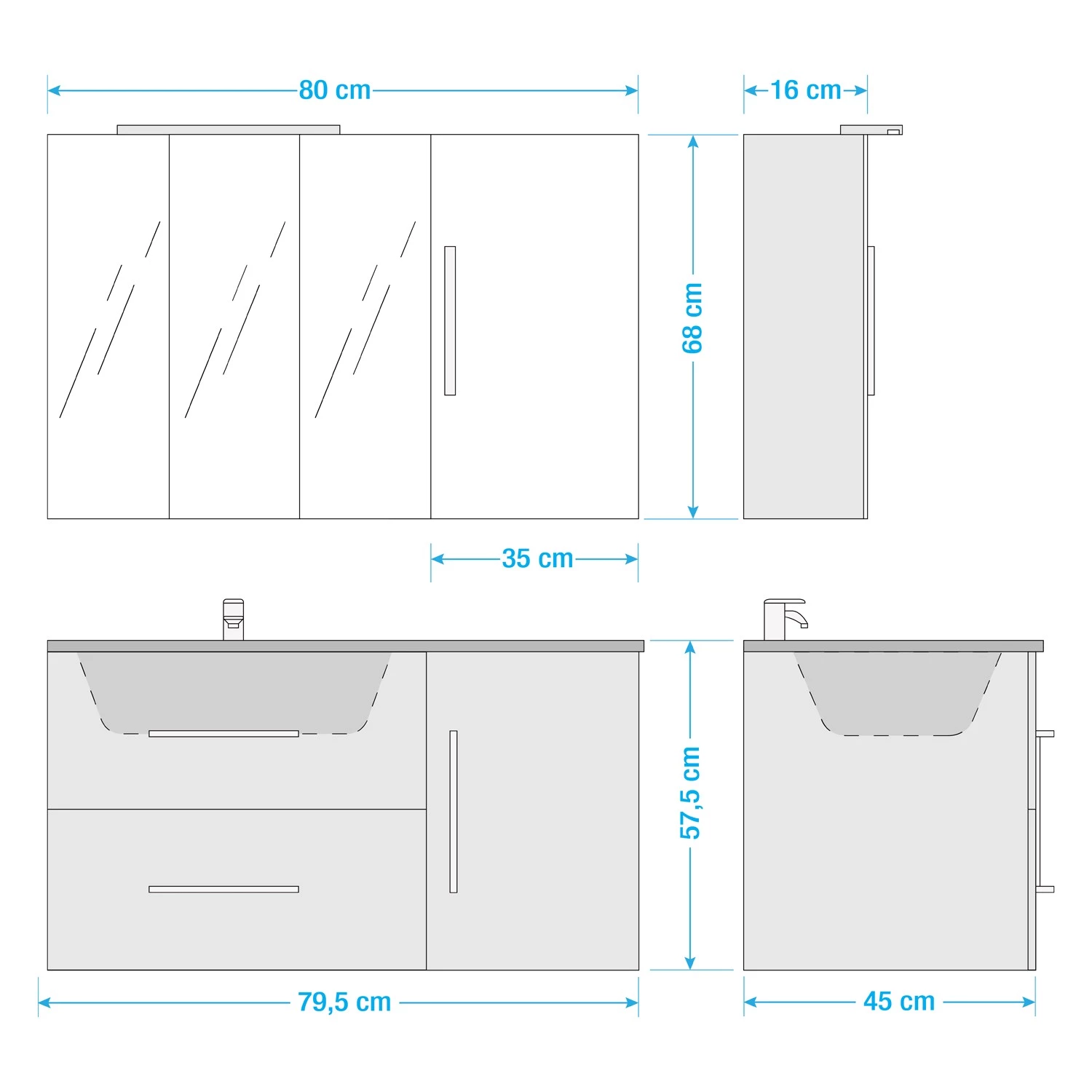 - Armoire de toilette (LxHxP) : 80 x 68 x 16 cm