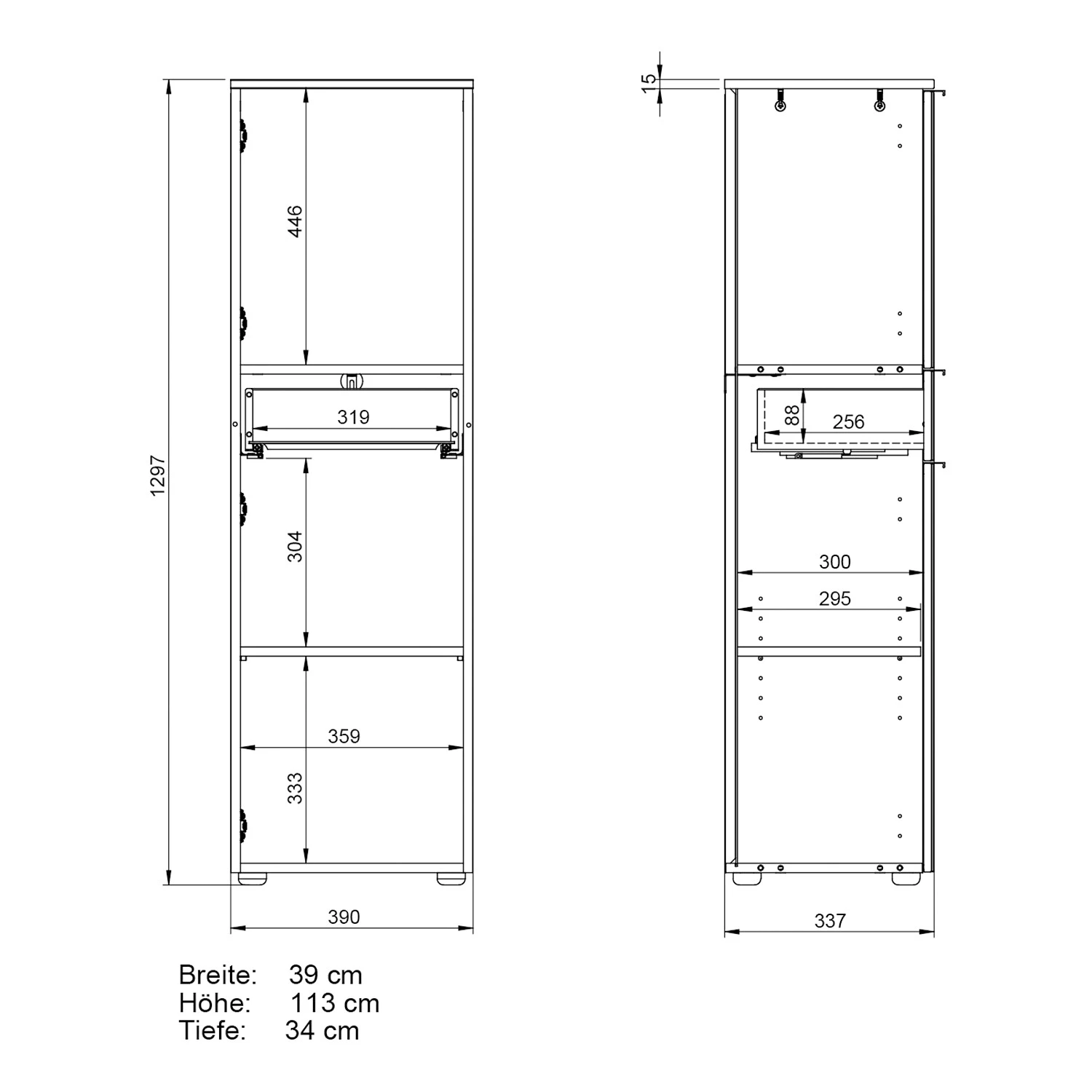 - Dimensions intérieures du tiroir : (L x H x P) : 31.9 x 8.3 x 25.5 cm