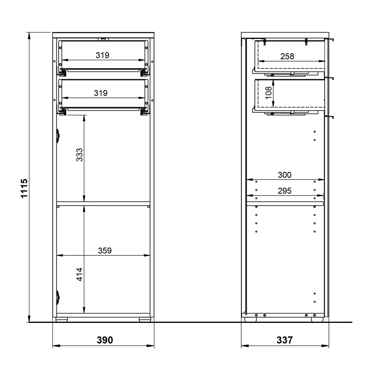 - – Tiroirs : 31,9 x 10,8 x 25,8 cm chaque