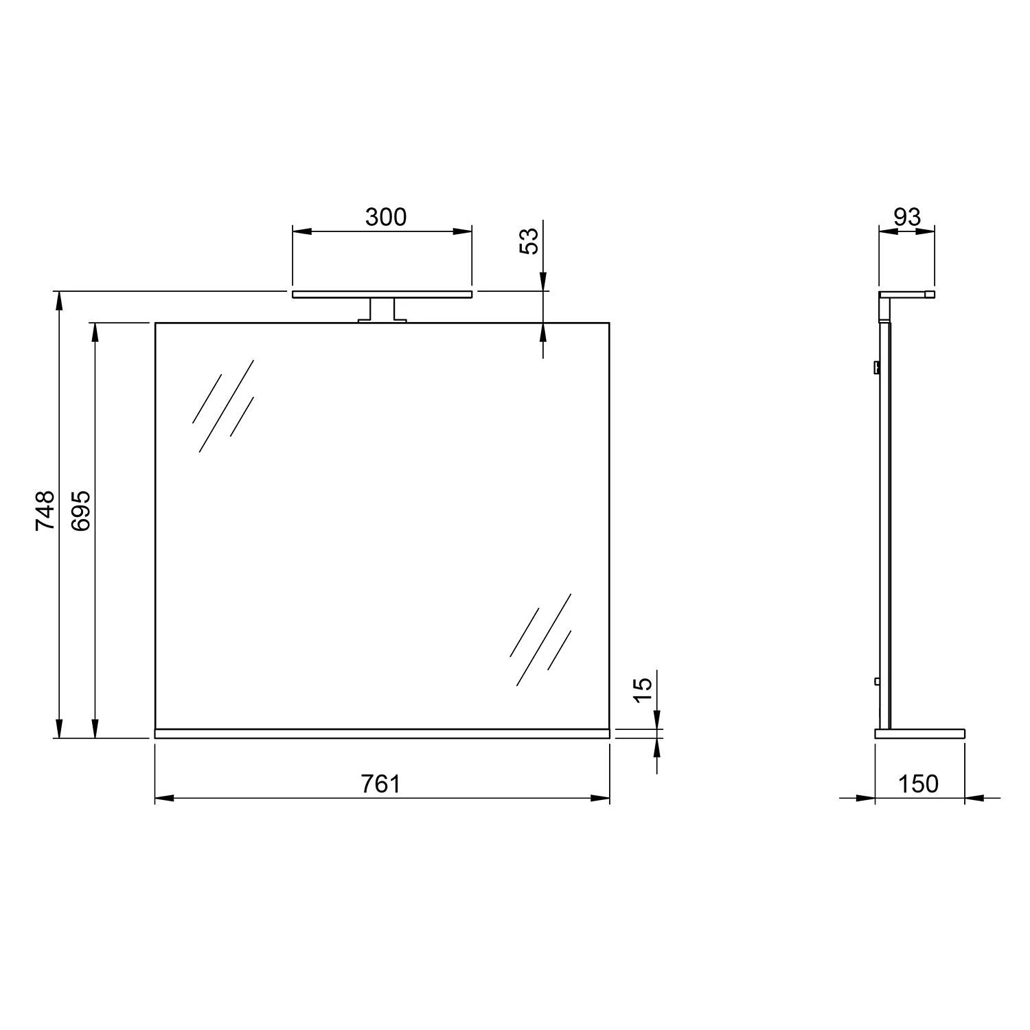 - – Étagère : 76,1 x 1,5 x 15 cm