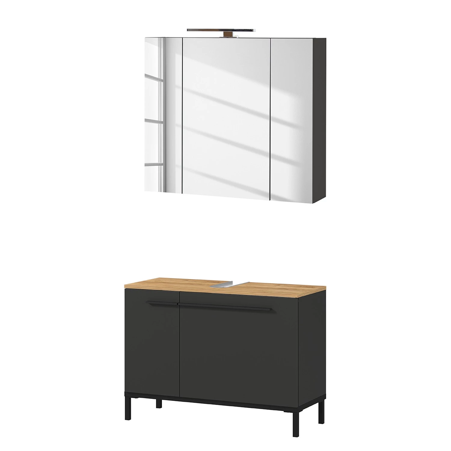 - Contenu de la livraison : Ensemble de salle de bain comprenant 1 meuble sous lavabo et 1 armoire de toilette avec éclairage, interrupteur et prise