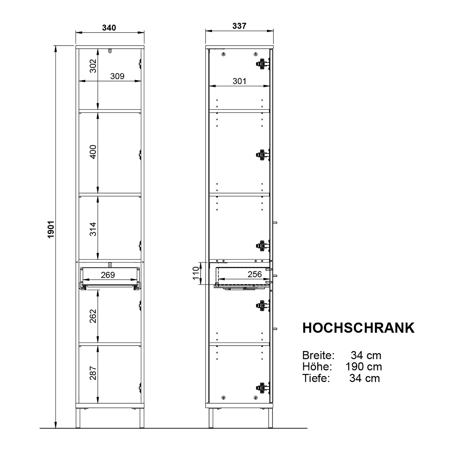 - Contenu de la livraison : Ensemble de salle de bain comprenant 1 meuble sous lavabo, 1 meuble bas, 1 colonne de salle de bain, 1 armoire midi et 1 armoire de toilette avec éclairage, interrupteur et prise