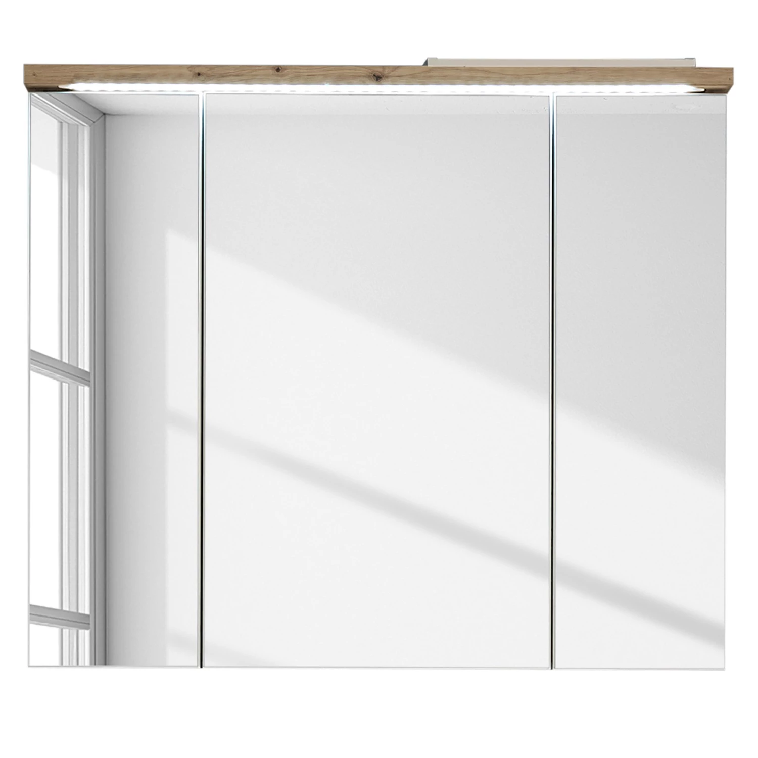 - 3 portes en bois avec miroir renfermant chacune 1 tablette