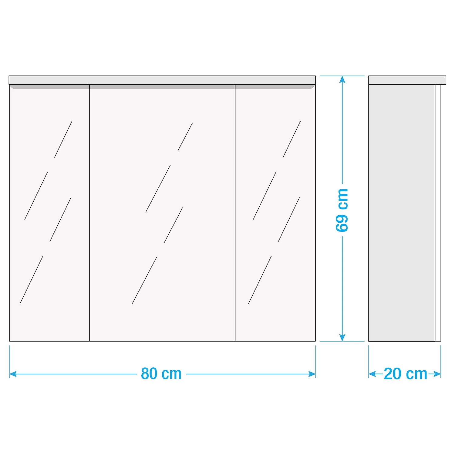 - Miroir central (LxH) : 39,6 x 65,6 cm
