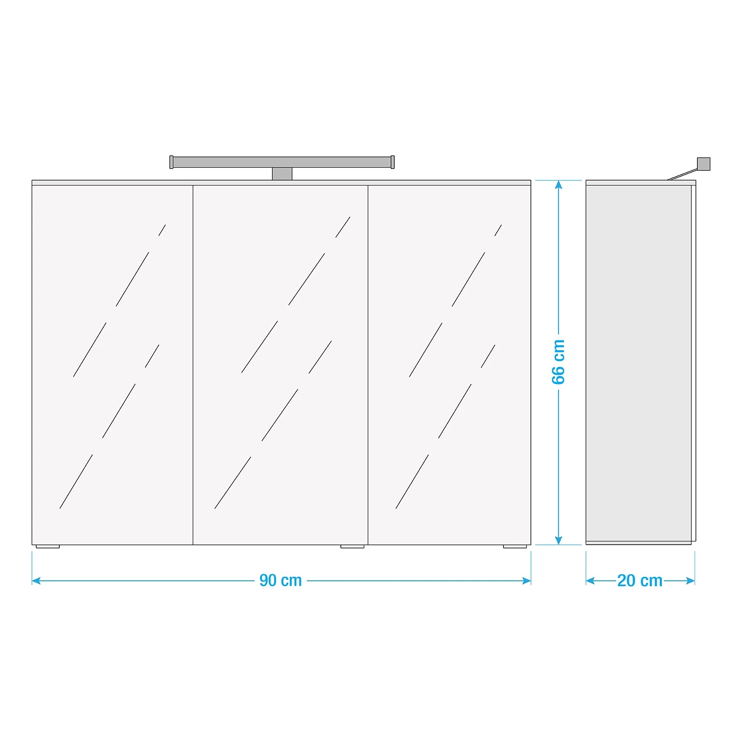 - 3 portes miroir avec amortisseurs d’ouverture, renfermant 6 tablettes en verre