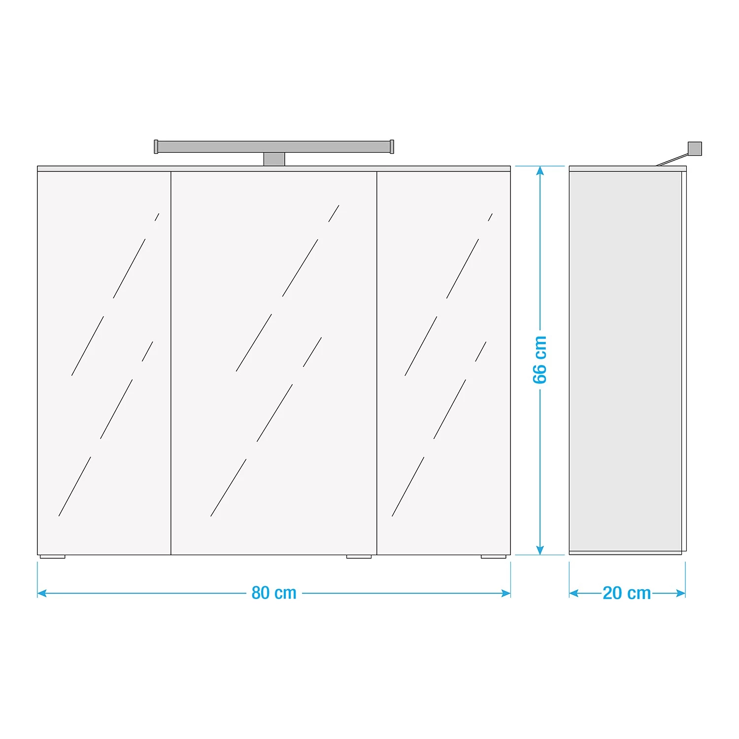 - 3 portes miroir avec amortisseurs d’ouverture, renfermant 6 tablettes en verre