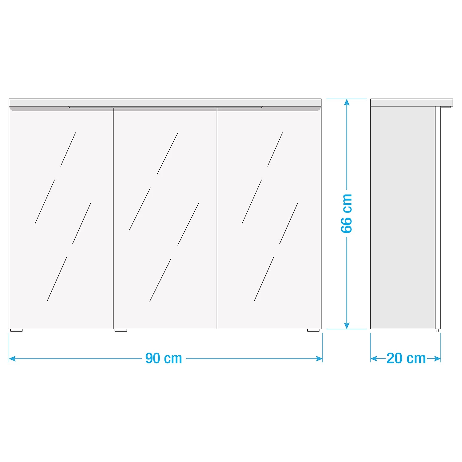 - 3 portes miroir avec amortisseurs d’ouverture, renfermant 6 tablettes en verre
