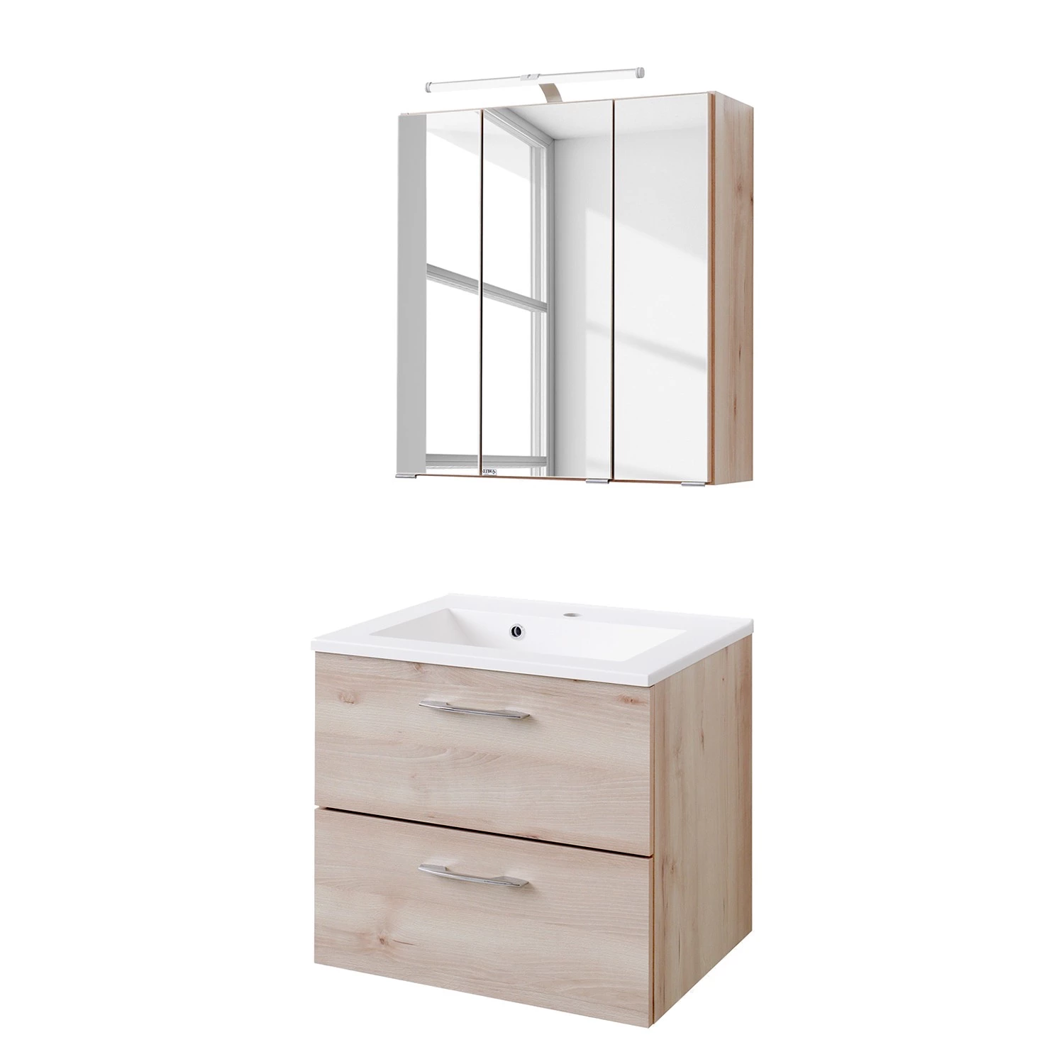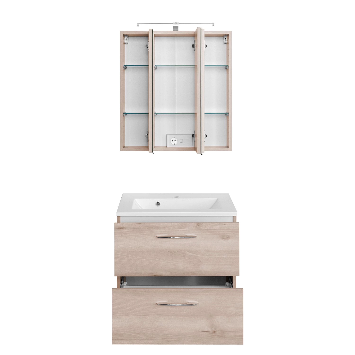 - Contenu de la livraison : Salle de bain comprenant 1 meuble avec vasque en fonte minérale et 1 armoire de toilette avec éclairage