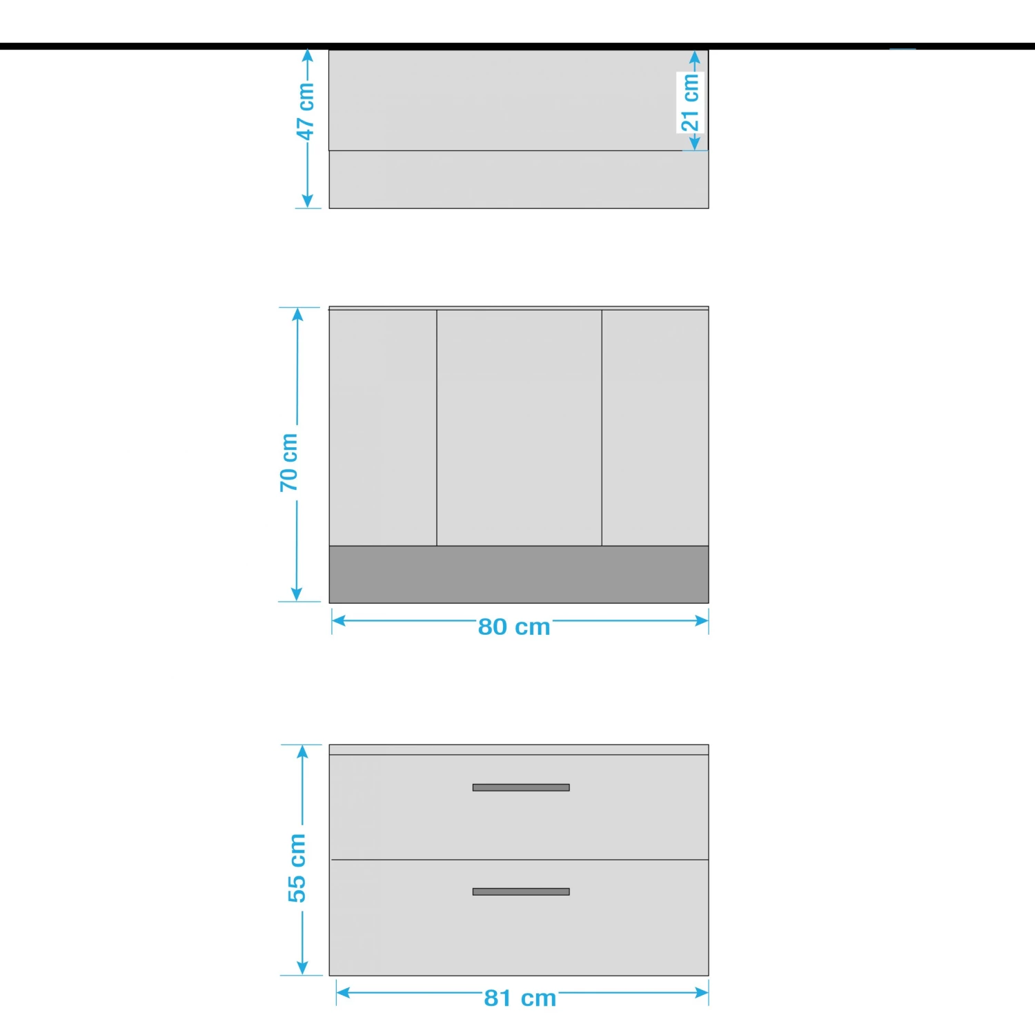 - Armoire de toilette (L x H x P) : 80 x 70 x 21 cm