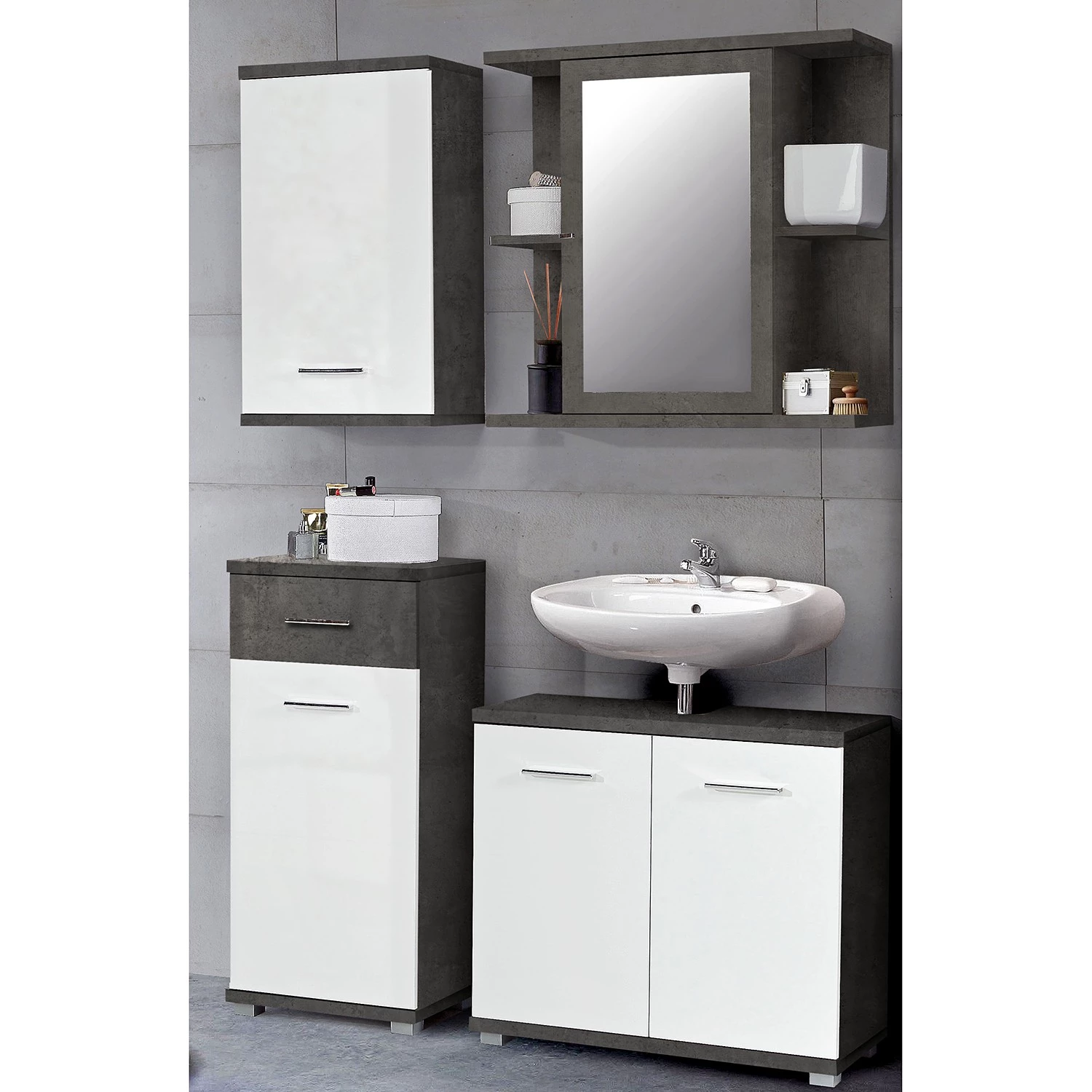 - Contenu de la livraison : Ensemble de salle de bain comprenant 1 meuble sous lavabo, 1 armoire de toilette, 1 armoire murale et 1 meuble bas