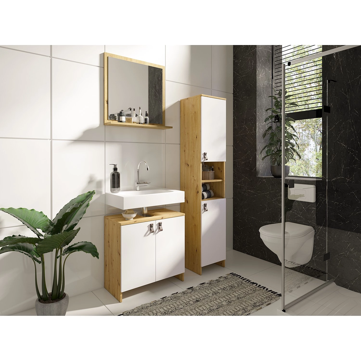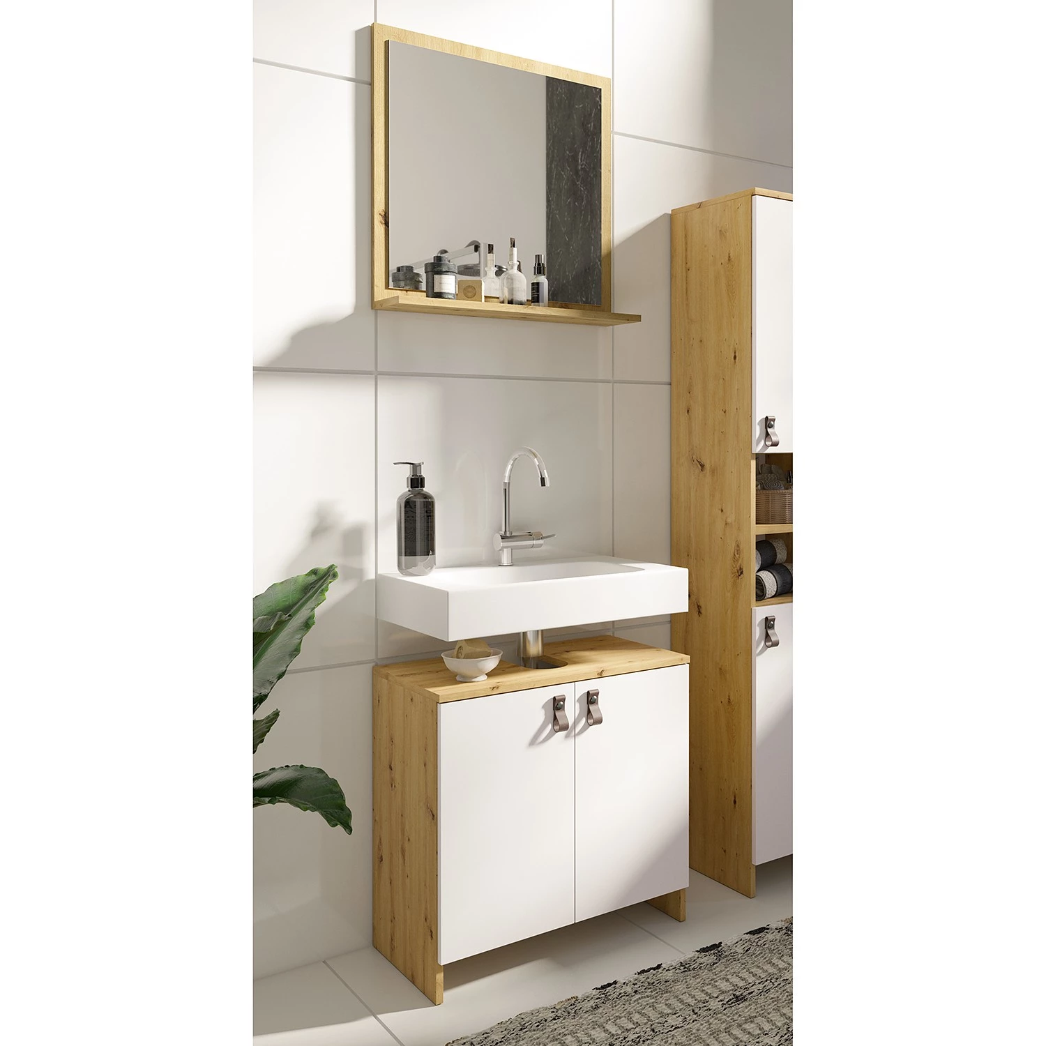- Contenu de la livraison : Ensemble de salle de bain comprenant 1 meuble sous lavabo et 1 miroir