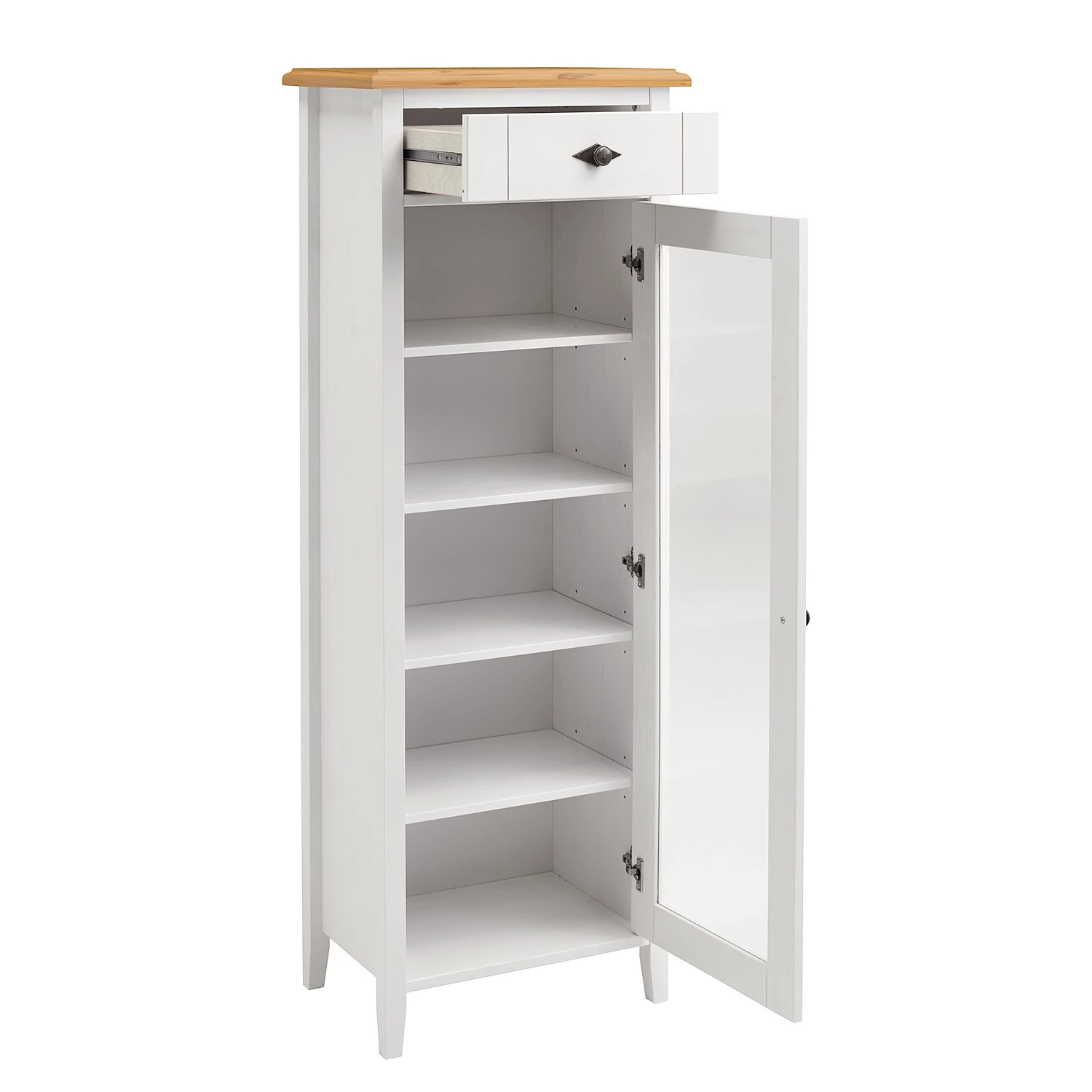 - Façade et corps : pin massif verni