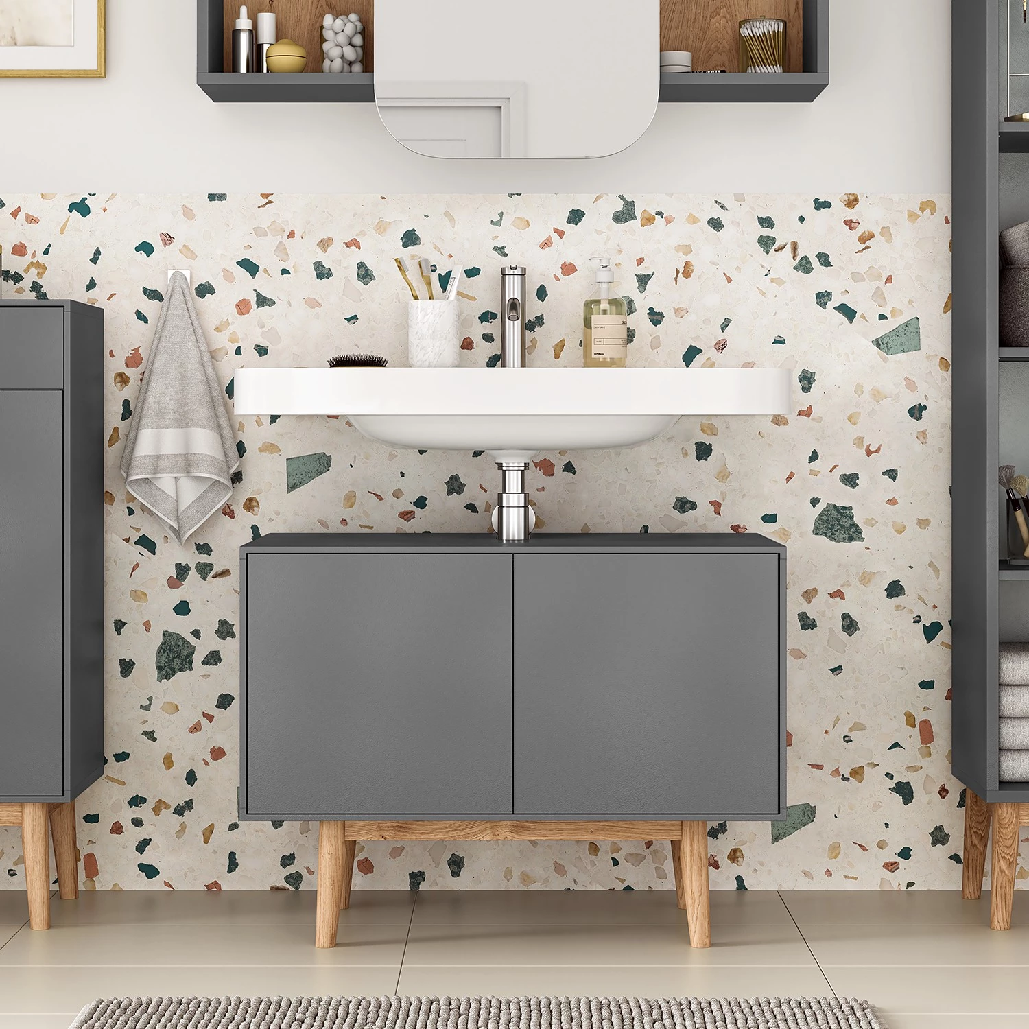 - Contenu de la livraison : Ensemble de salle de bain comprenant 1 meuble sous lavabo, 1 étagère, 1 meuble bas et 1 armoire de toilette