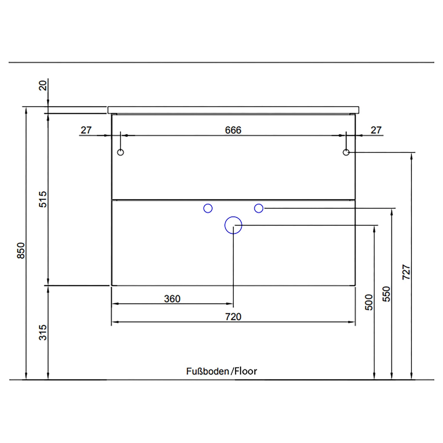 - Nombre de tiroirs : 2