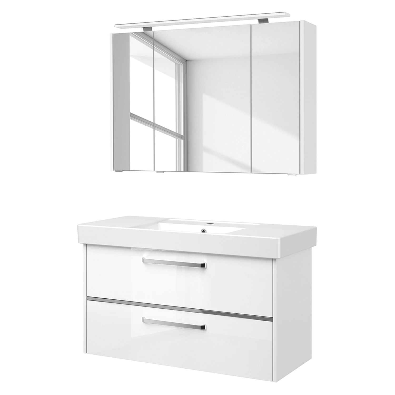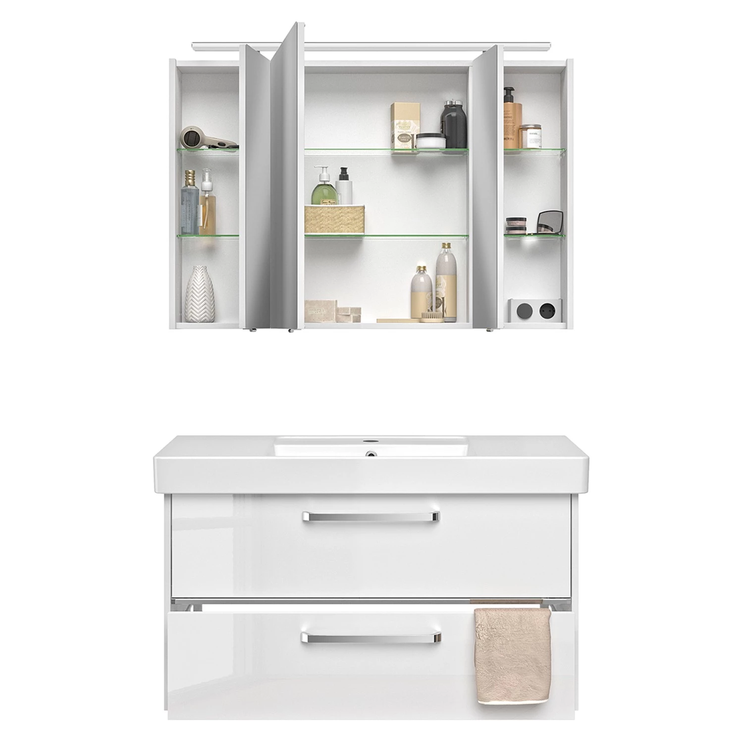 - Contenu de la livraison : Salle de bain comprenant 1 meuble avec vasque en céramique et 1 armoire de toilette avec éclairage