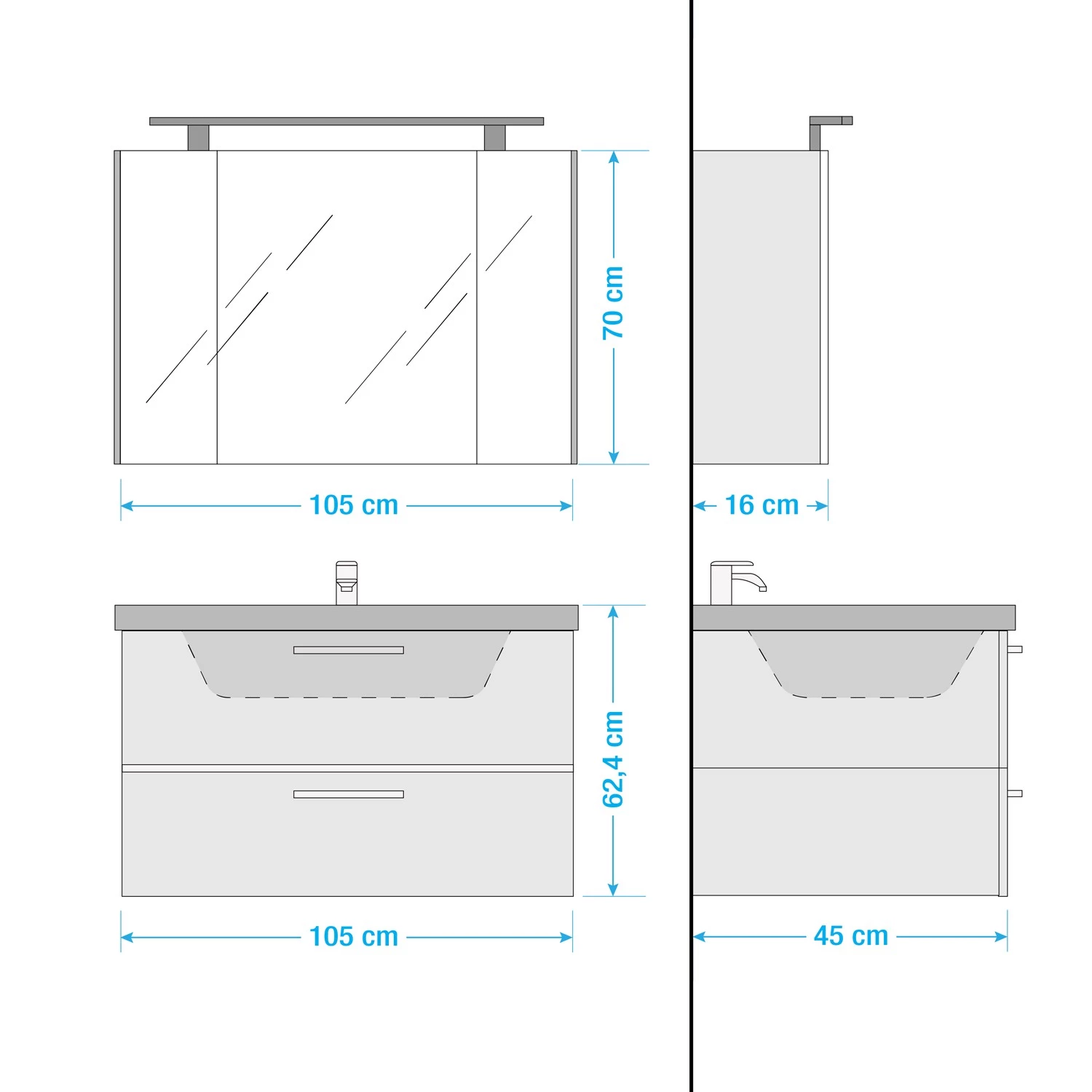 - Armoire de toilette (LxHxP) : 105 x 70 x 16 cm