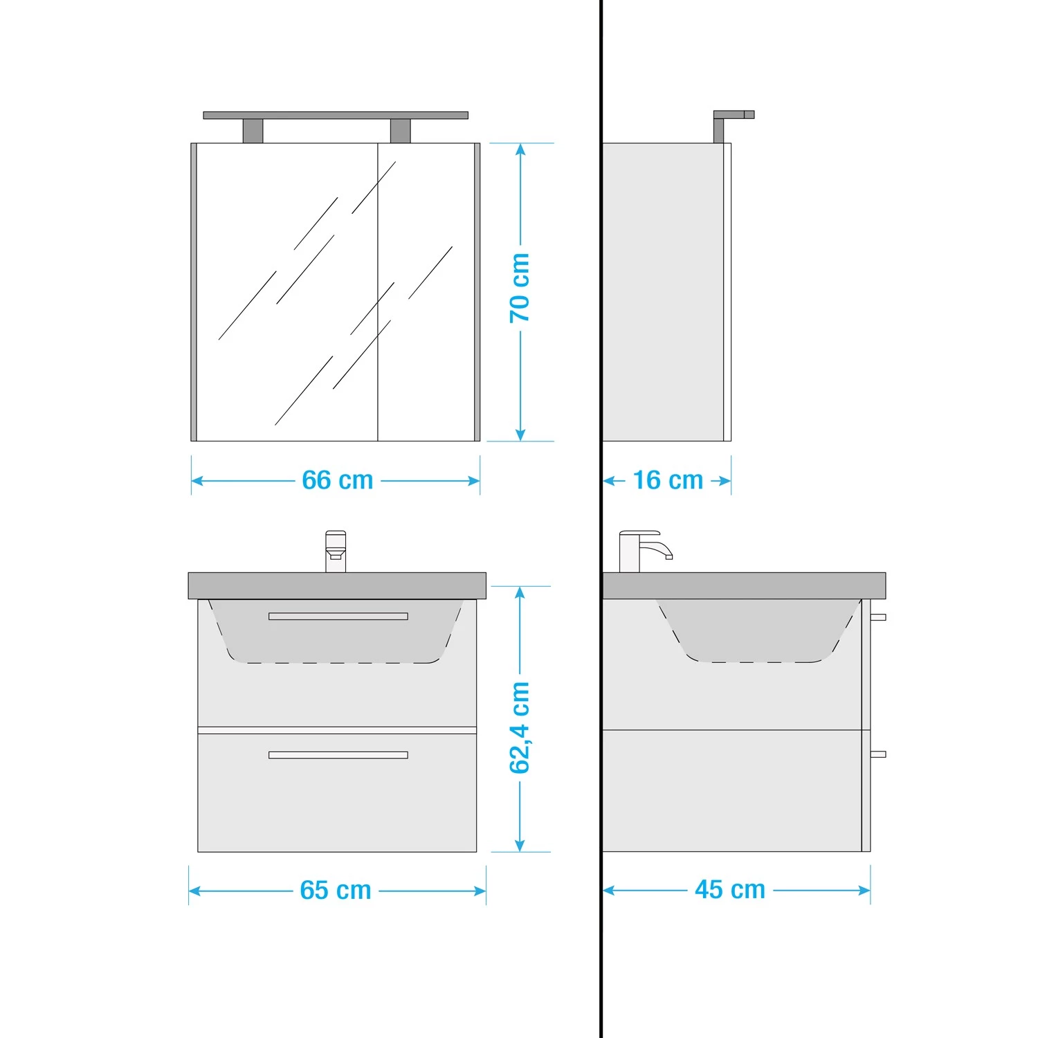 - Armoire de toilette (LxHxP) : 66 x 70 x 16 cm