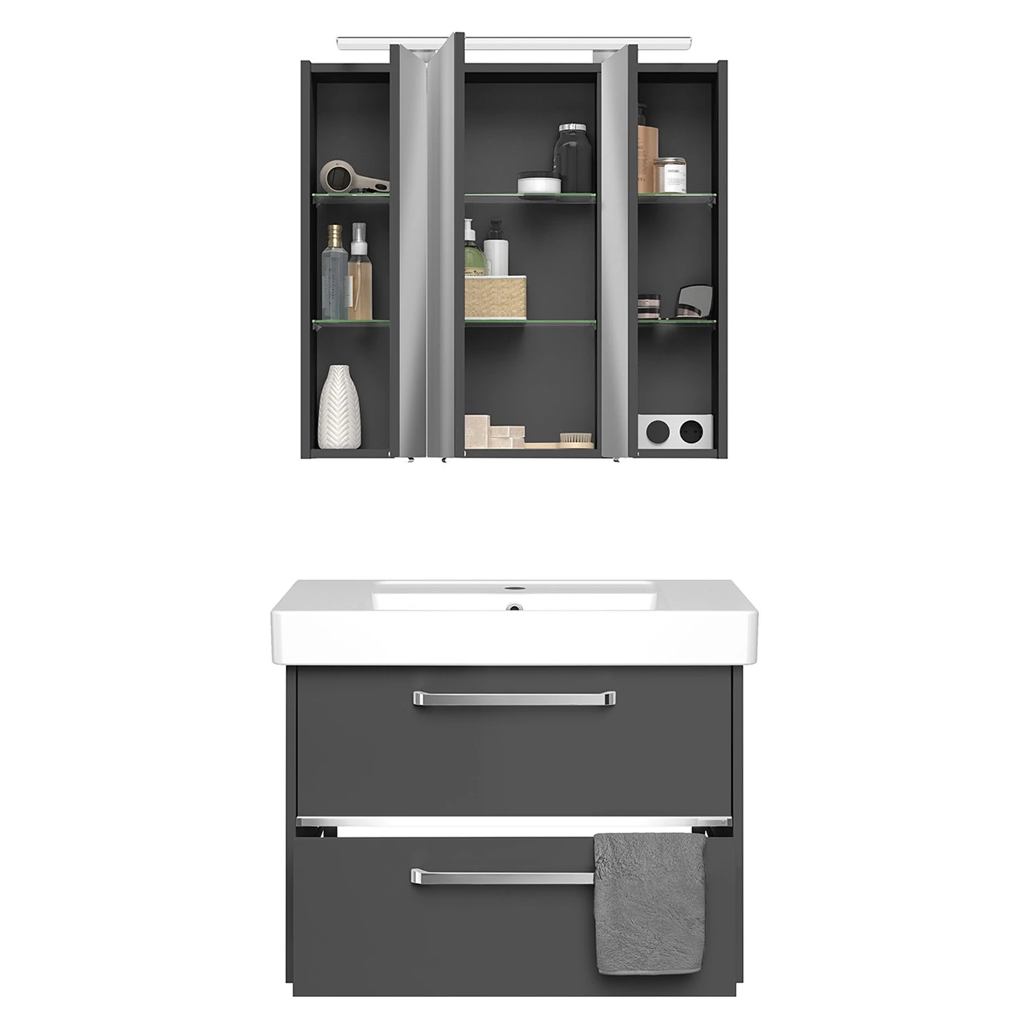 - Contenu de la livraison : Salle de bain comprenant 1 meuble avec vasque et éclairage tiroir, et 1 armoire de toilette avec éclairage