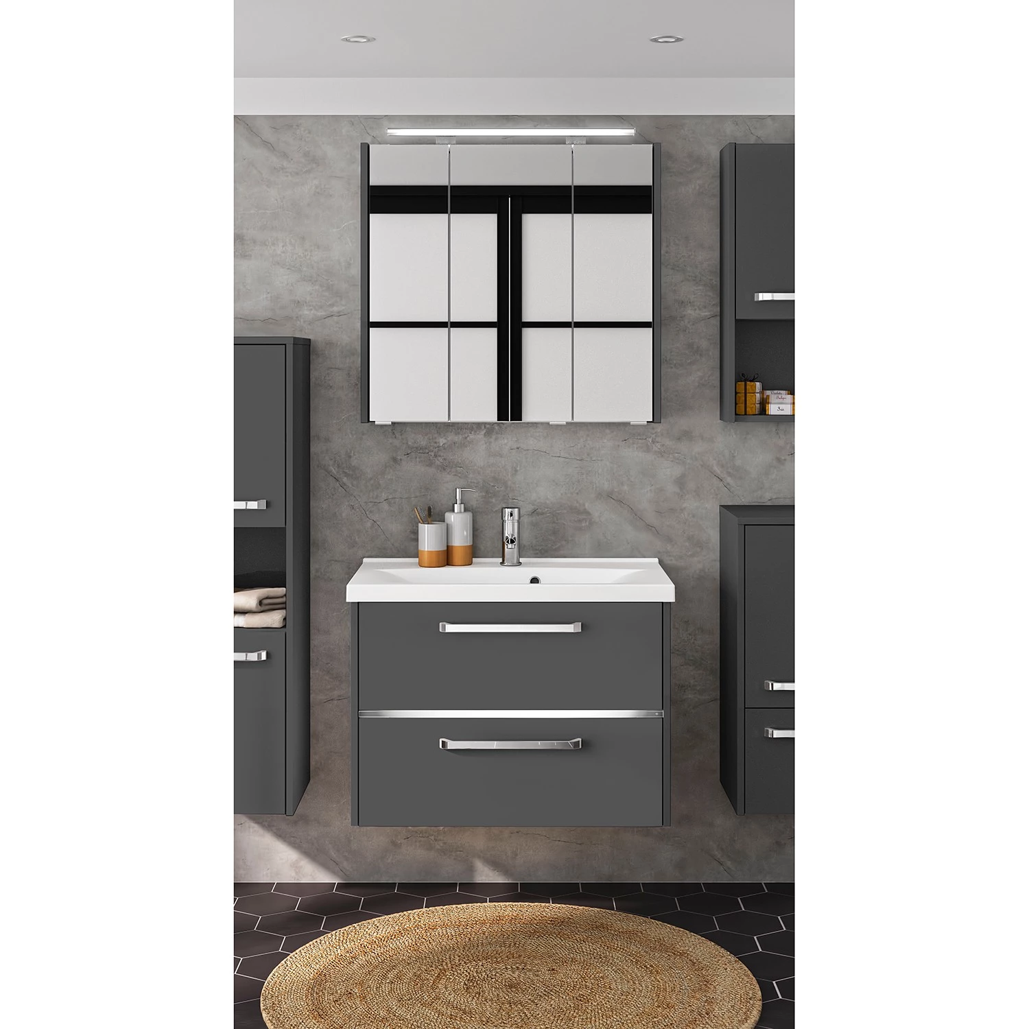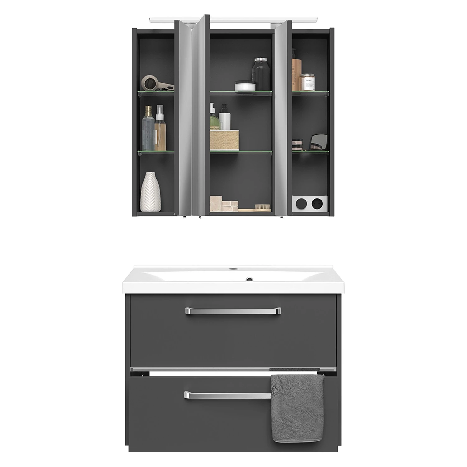 - Contenu de la livraison : Salle de bain comprenant 1 meuble avec vasque en fonte minérale et 1 armoire de toilette avec éclairage