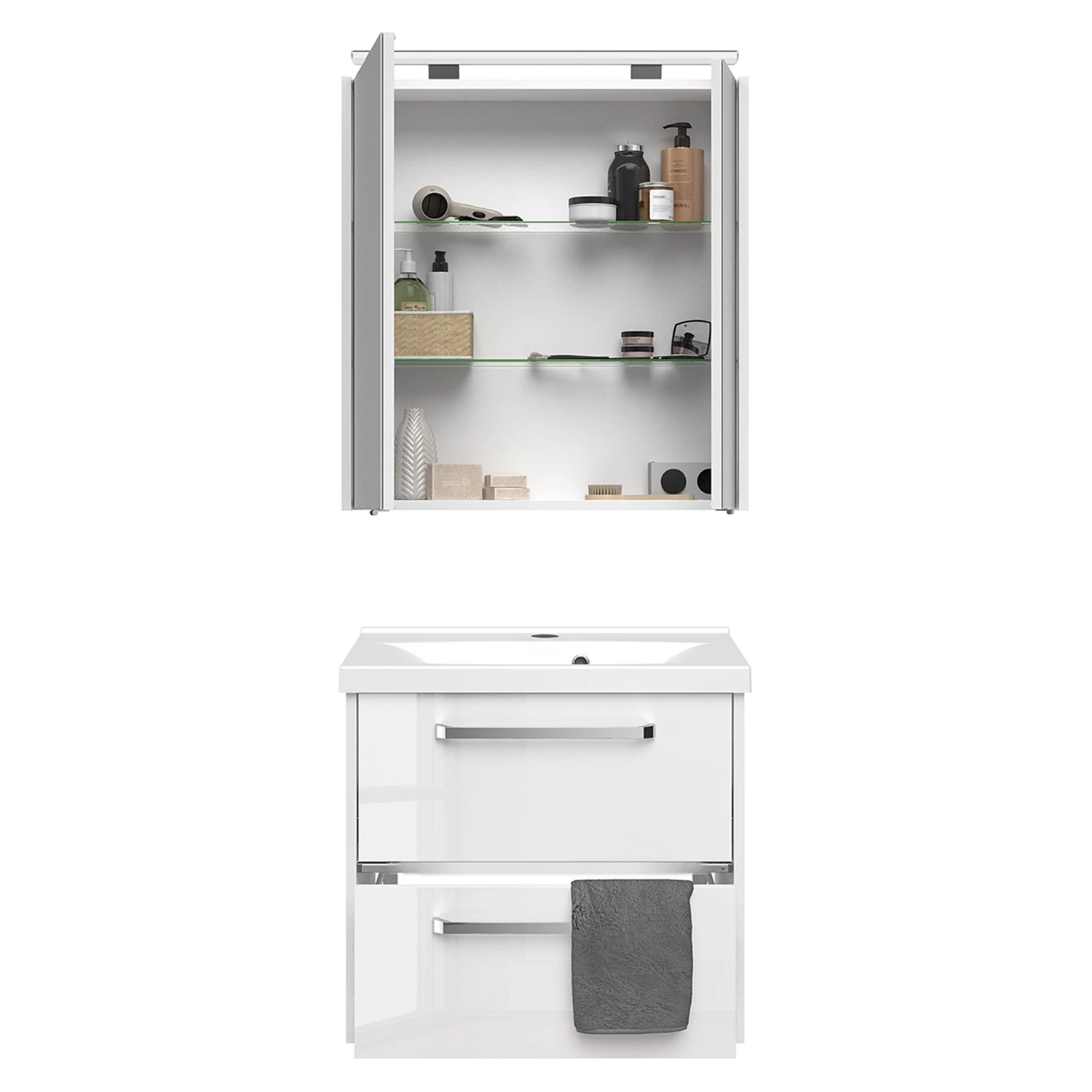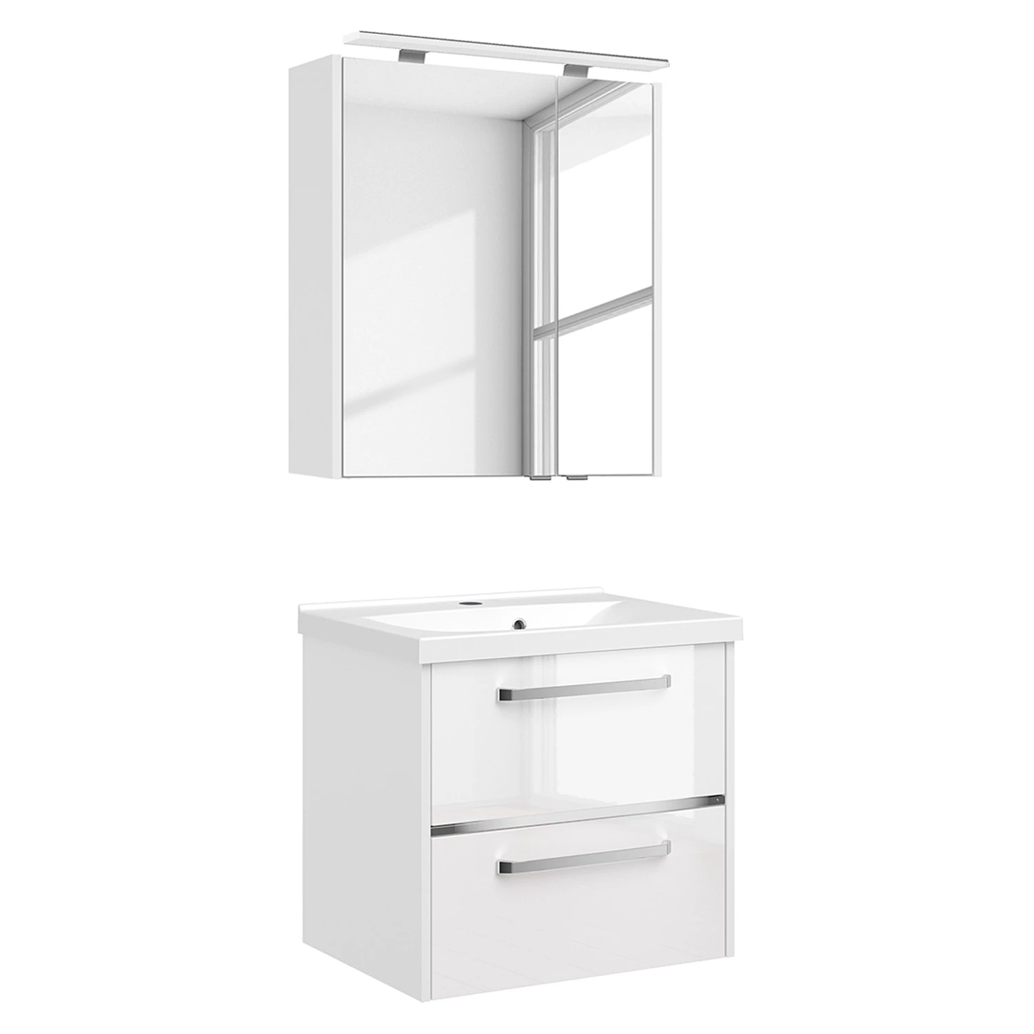 - Contenu de la livraison : Salle de bain comprenant 1 meuble avec vasque en fonte minérale et éclairage tiroir, et 1 armoire de toilette avec éclairage