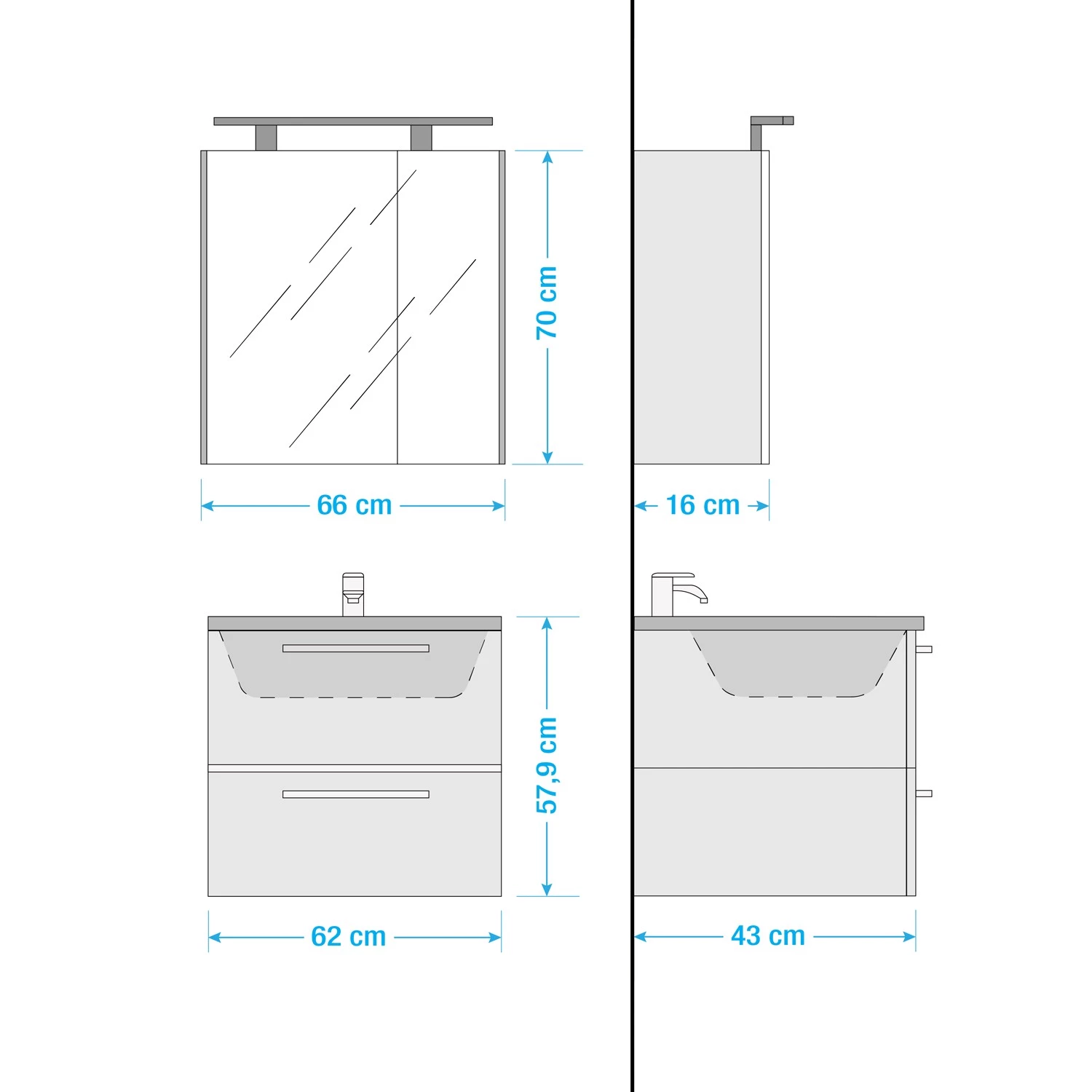 - Armoire de toilette (LxHxP) : 66 x 70 x 16 cm