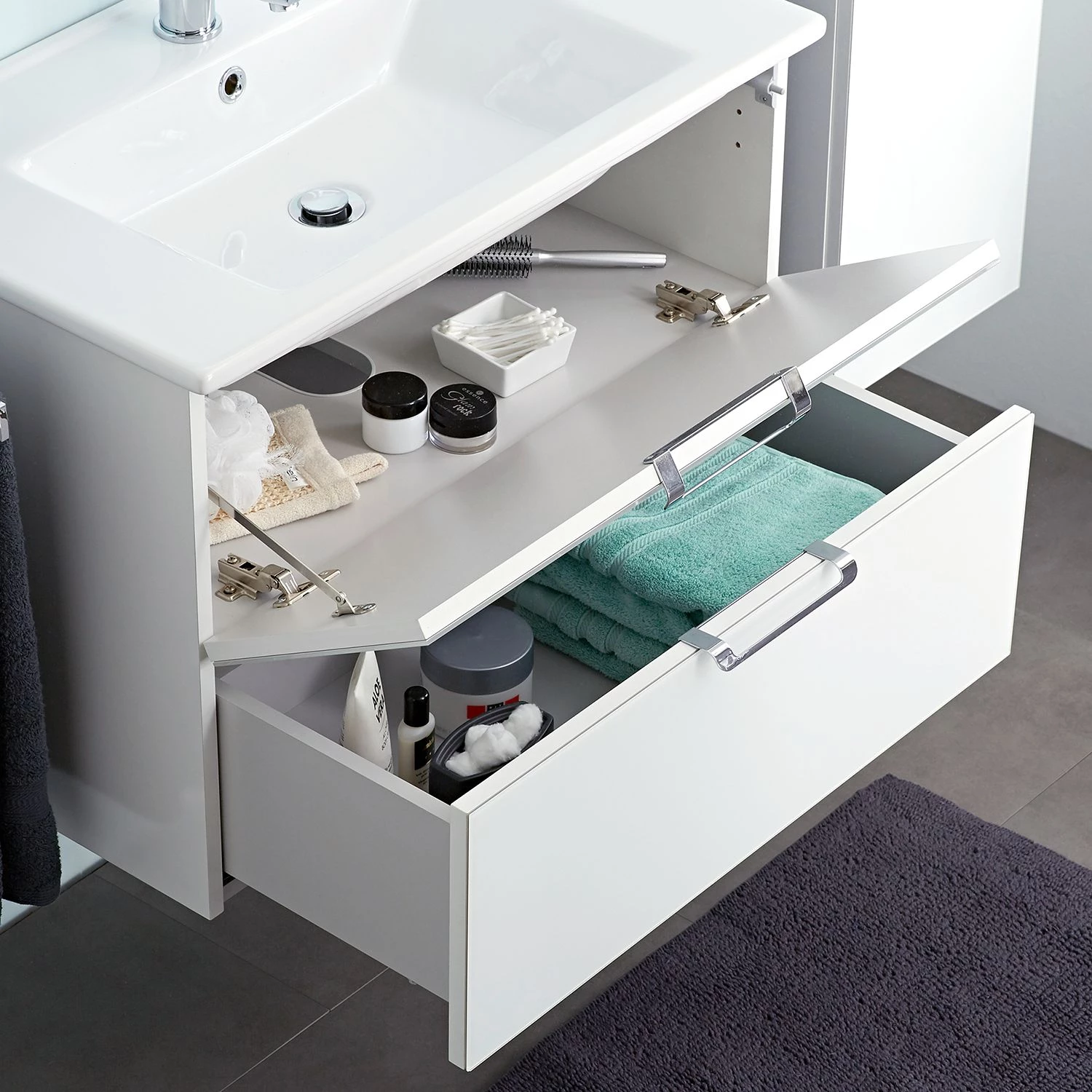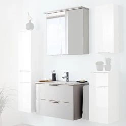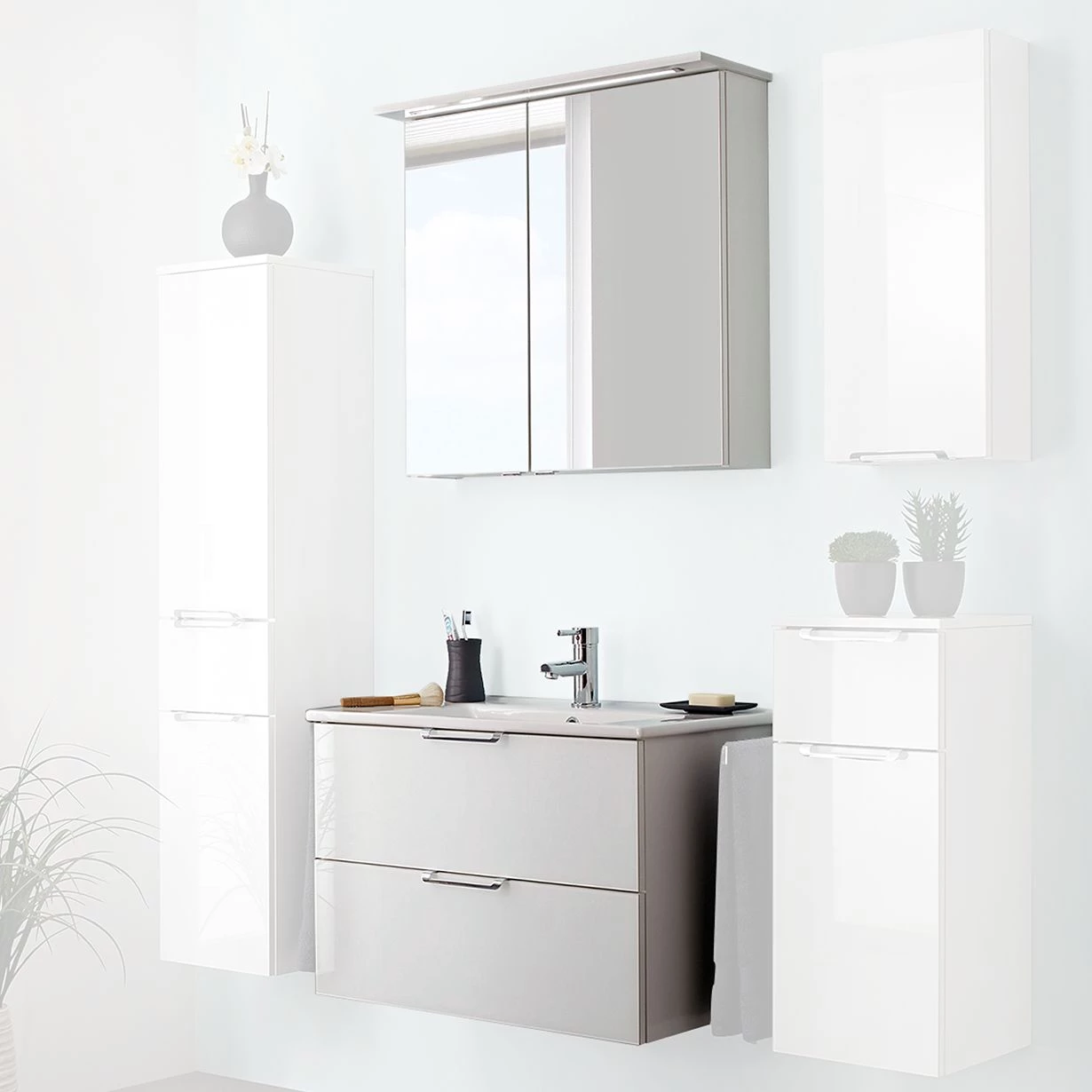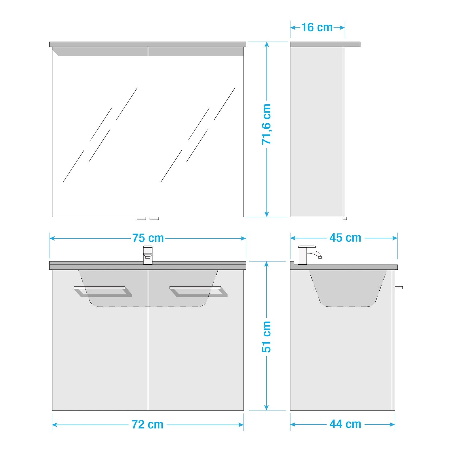 - Contenu de la livraison : 1 armoire de toilette avec éclairage et 1 meuble avec vasque, sans accessoires