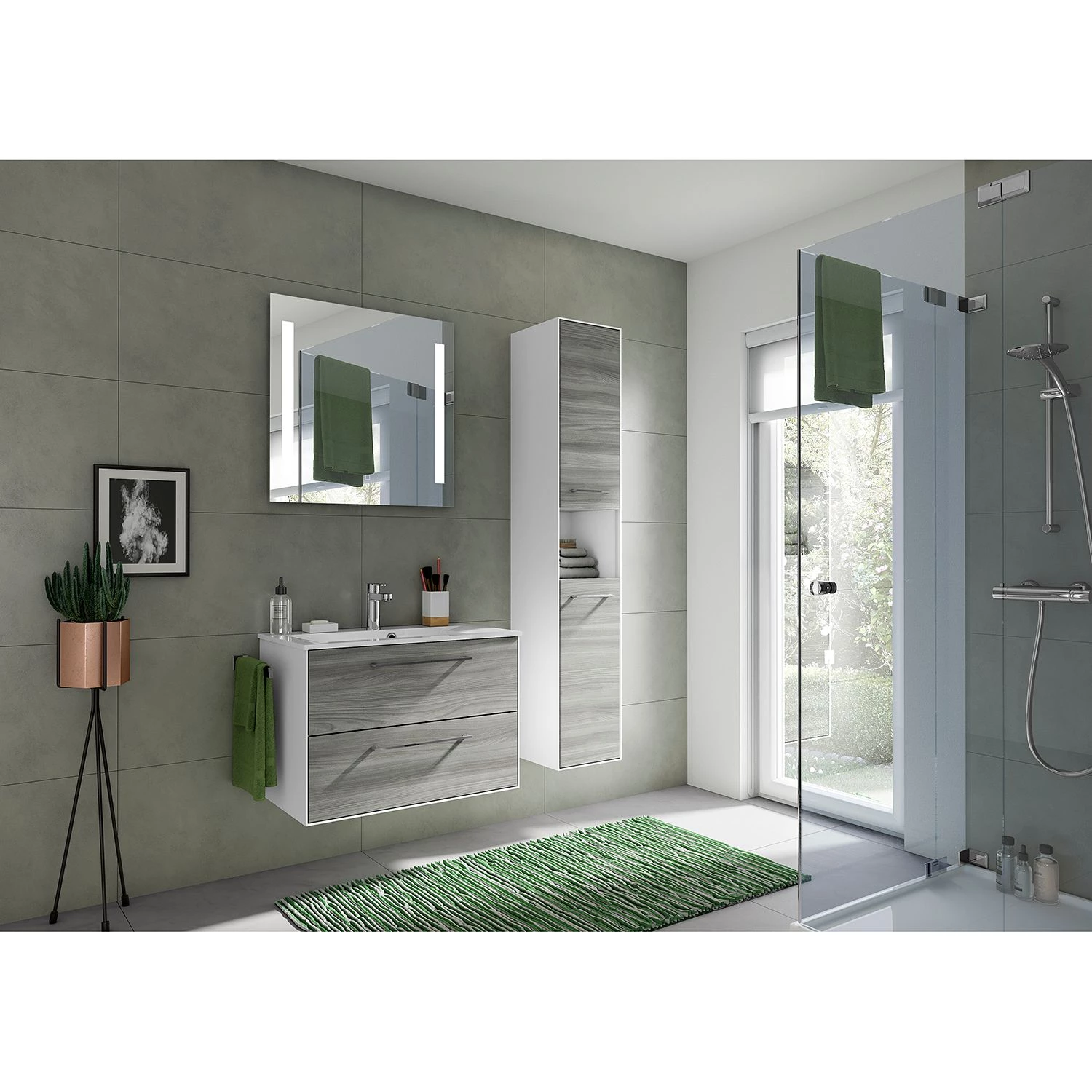 - Contenu de la livraison : 1 miroir avec éclairage et 1 meuble avec vasque, sans accessoires