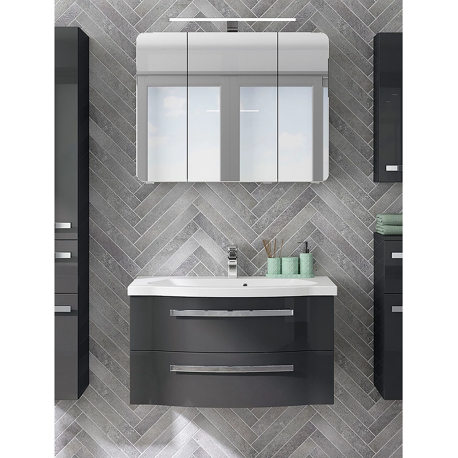 - Contenu de la livraison : armoire de toilette avec éclairage, sans accessoires