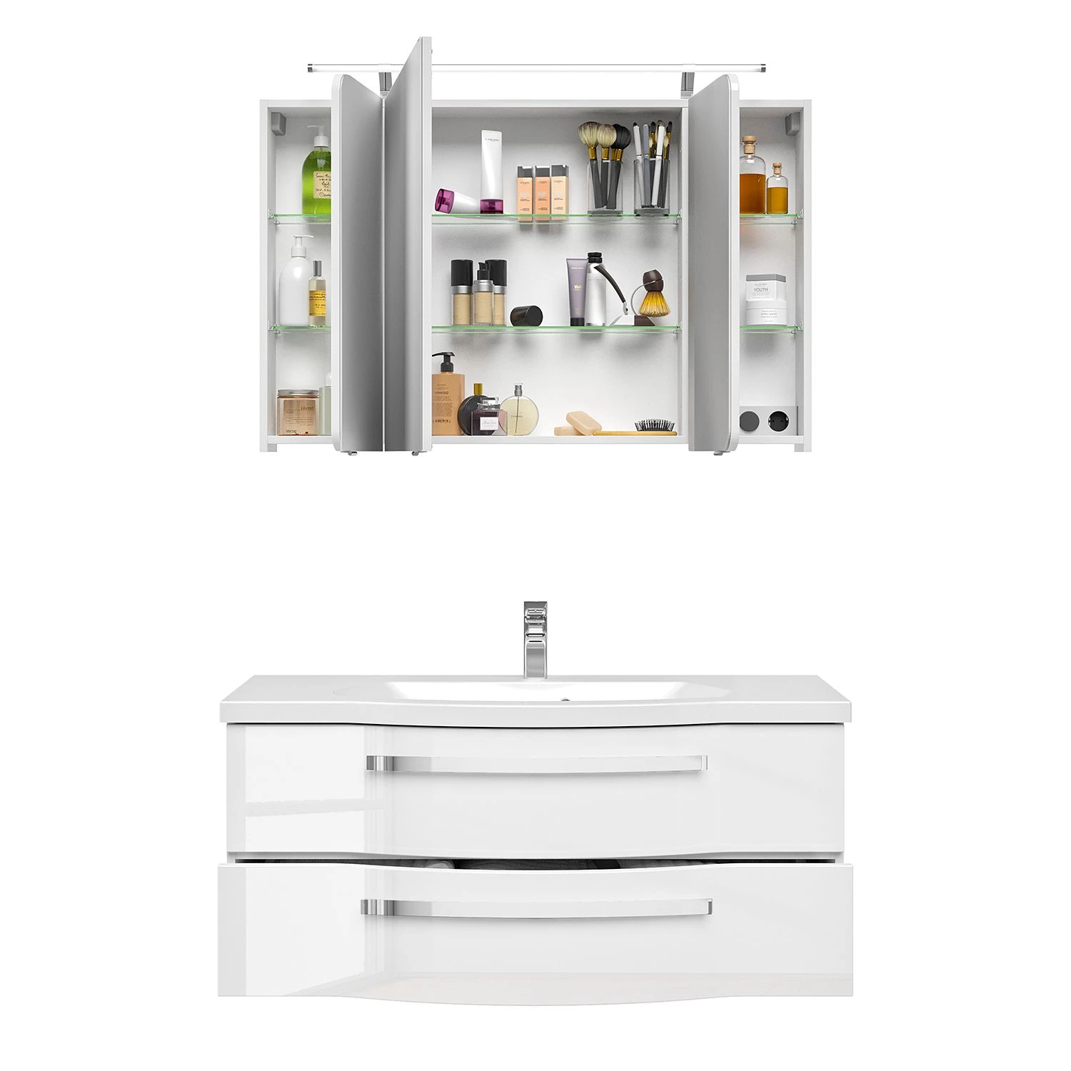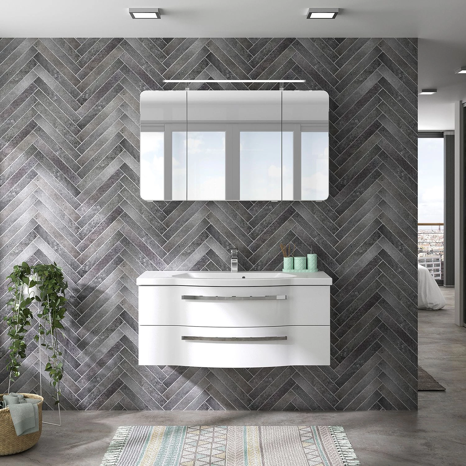 - Contenu de la livraison : armoire de toilette avec éclairage, sans accessoires