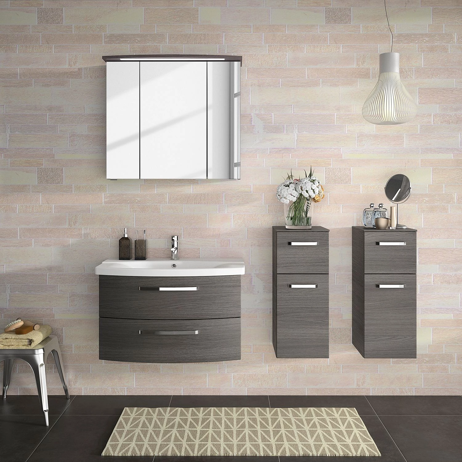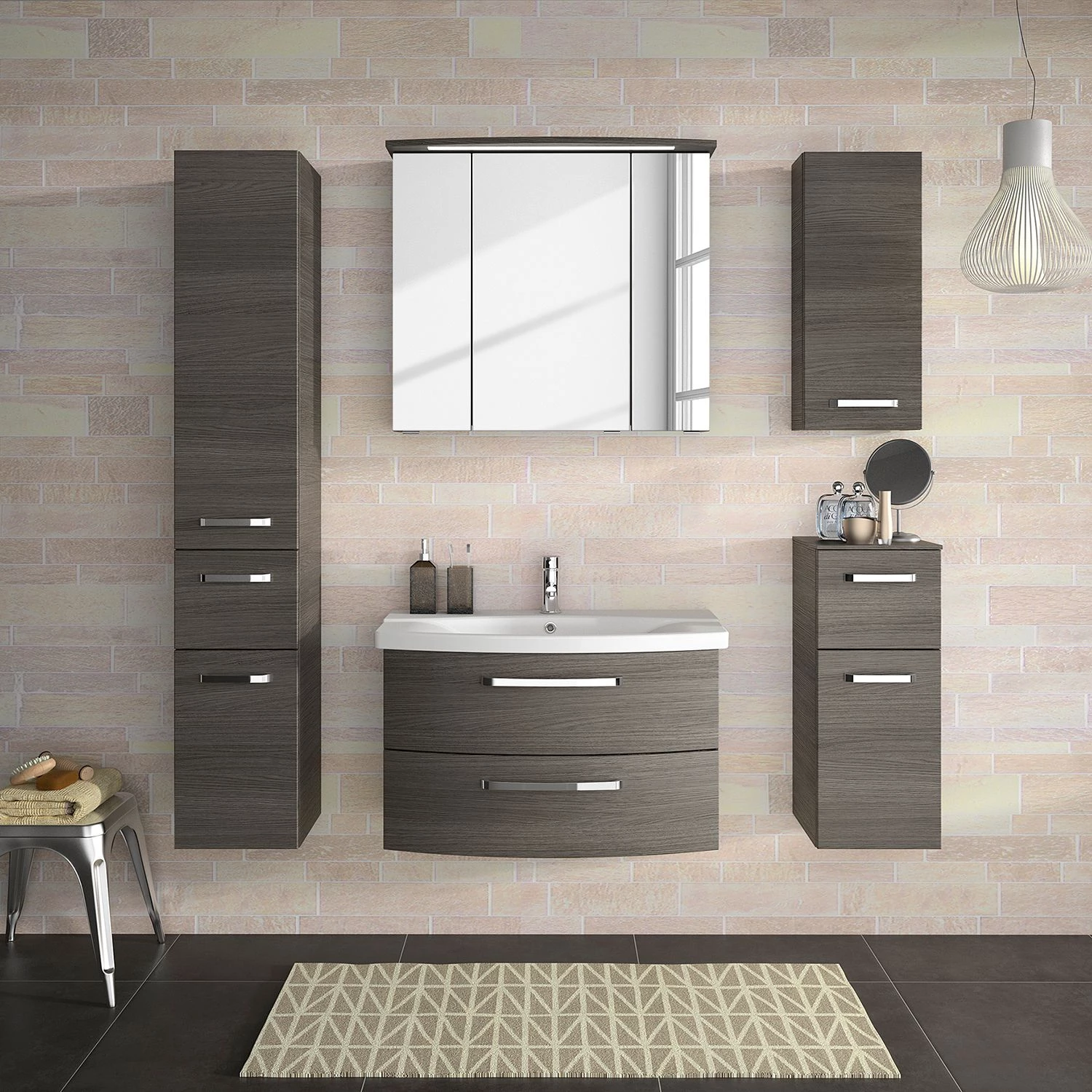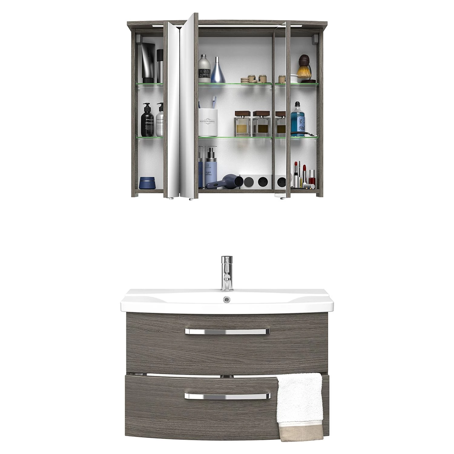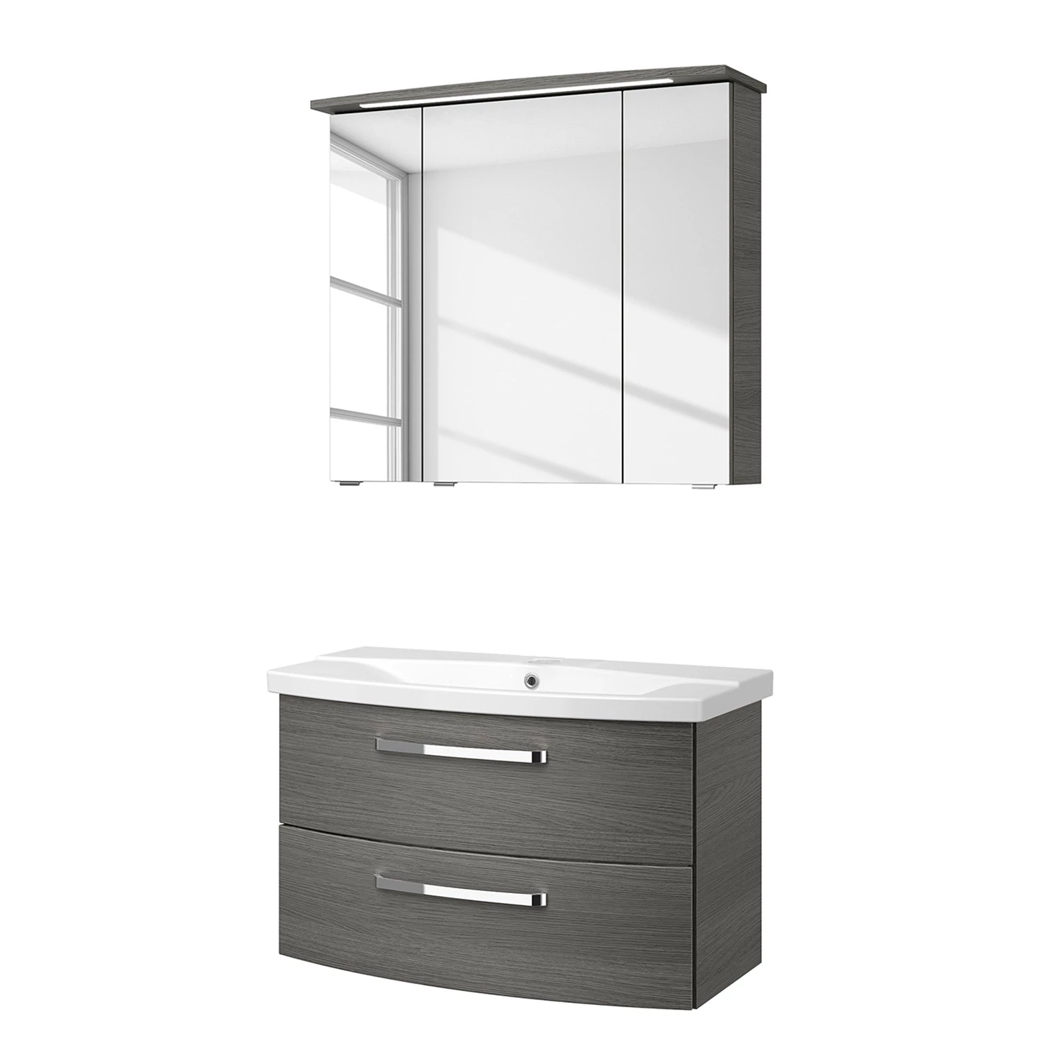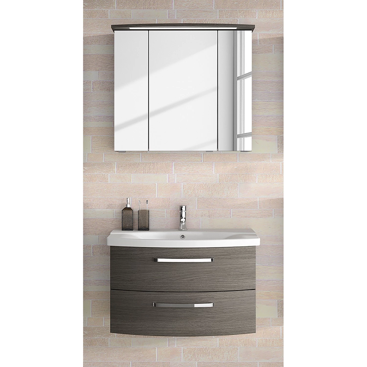 - Contenu de la livraison : 1 armoire de toilette avec éclairage et 1 meuble avec vasque, sans accessoires