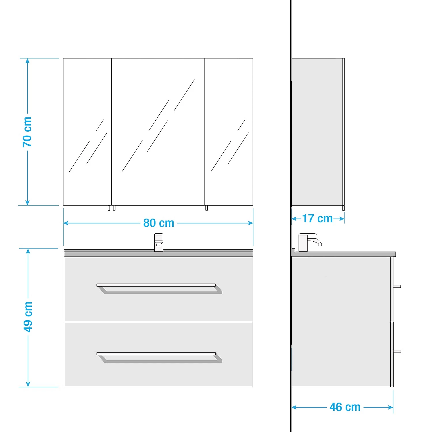 - Autres dimensions : Armoire de toilette : 80 x 70,3 x 17 cm