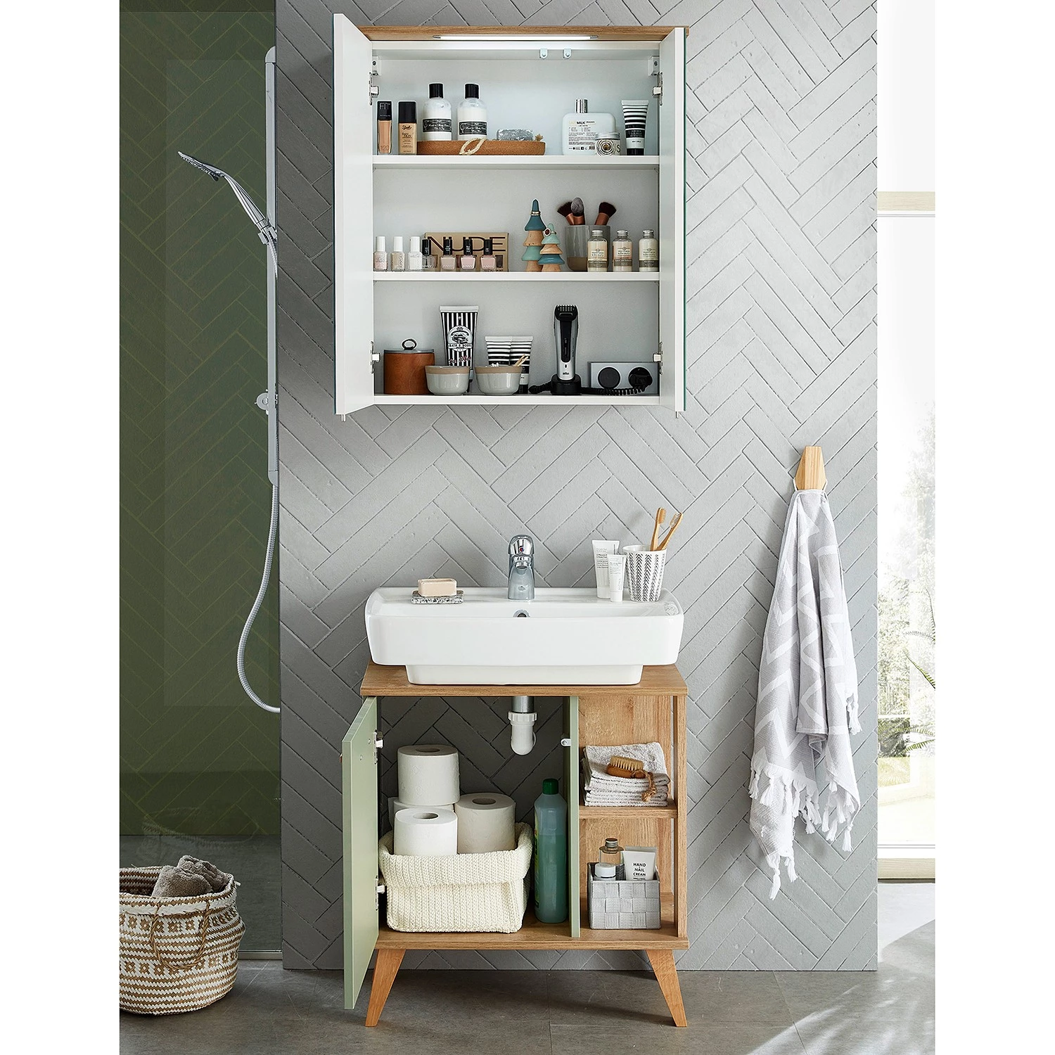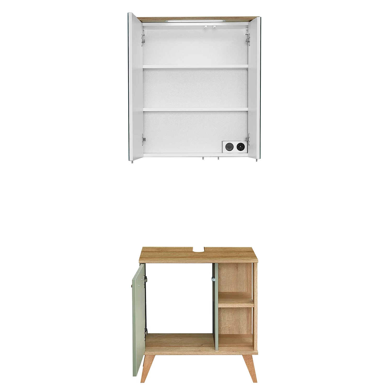 - Contenu de la livraison : Ensemble de salle de bain comprenant 1 armoire de toilette et 1 meuble sous lavabo
