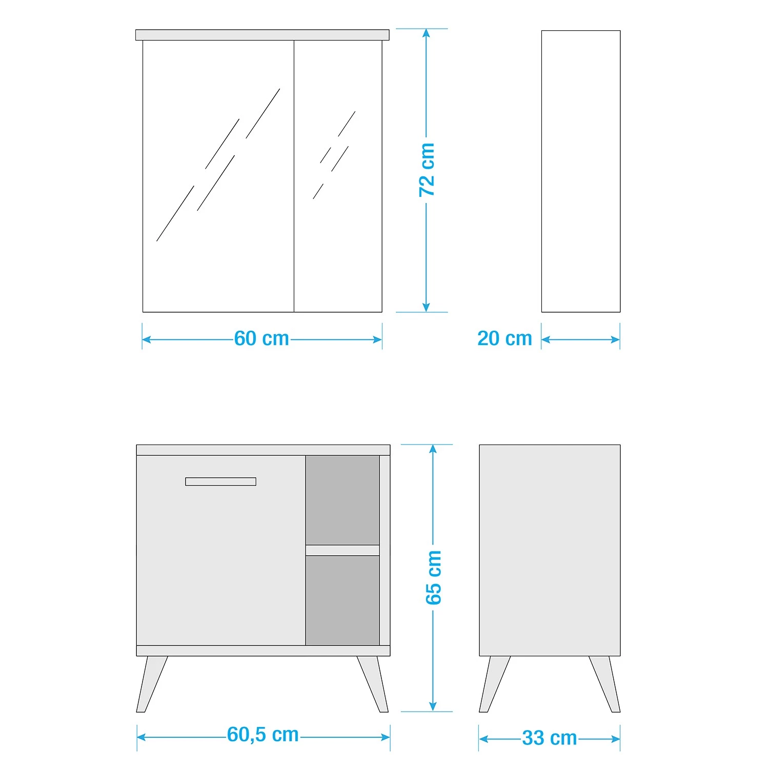 - Armoire de toilette (LxHxP) : 60 x 72 x 20 cm
