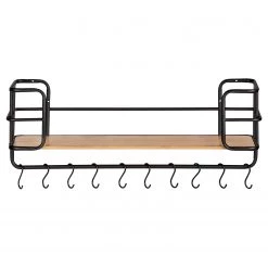 WENKO Étagère murale Loft II – Acier inoxydable / Bambou massif – Noir / Bambou