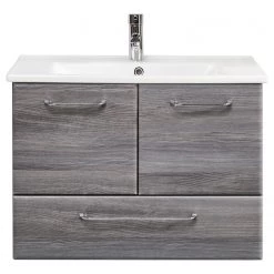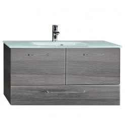 Pelipal Meuble avec vasque Filo II – Avec vasque en verre – Imitation chêne foncé – Largeur : 100 cm