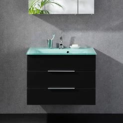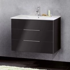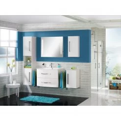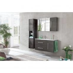 Fackelmann Meuble avec vasque Lugano II – Avec éclairage – Blanc brillant / Imitation pin anthracite