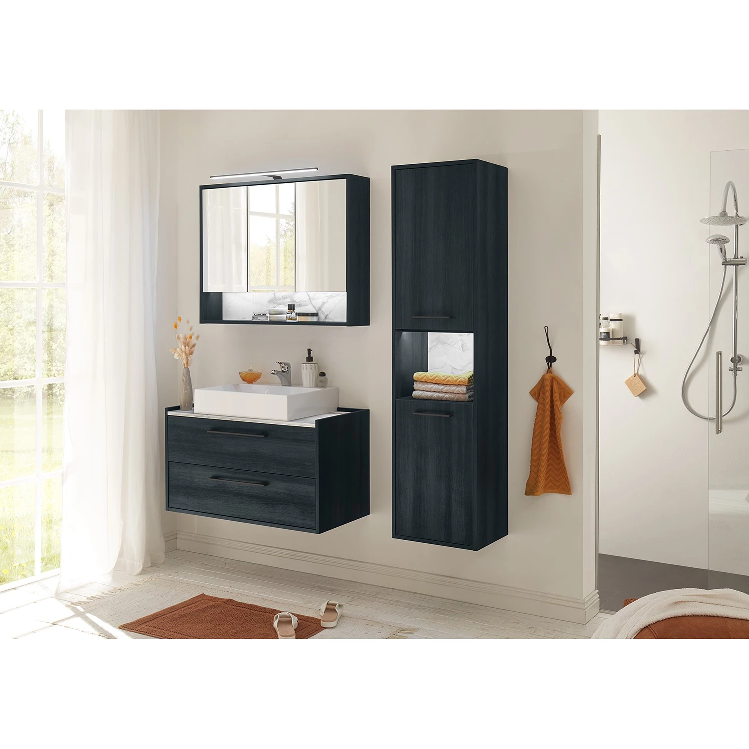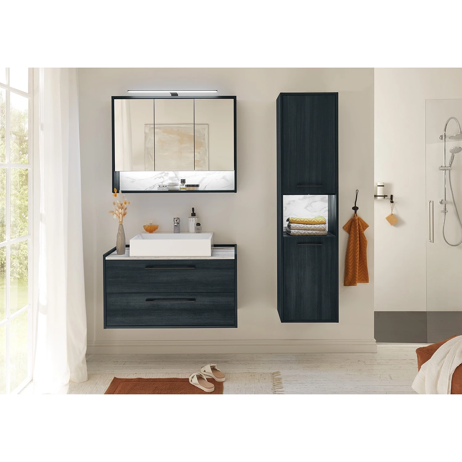 - Contenu de la livraison : Armoire de toilette avec miroir, éclairage LED, interrupteur et prise
