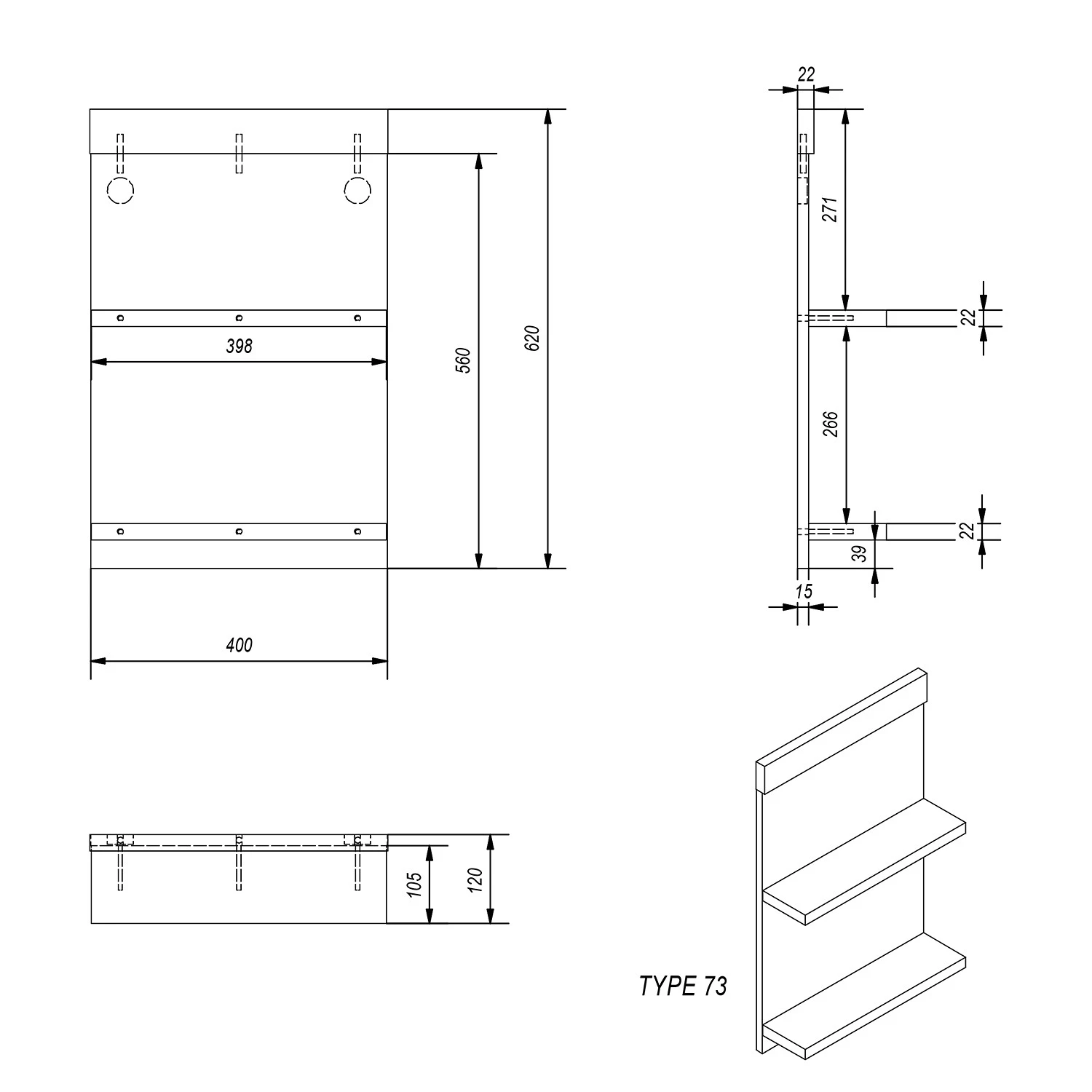 - Étagères : imitation pin