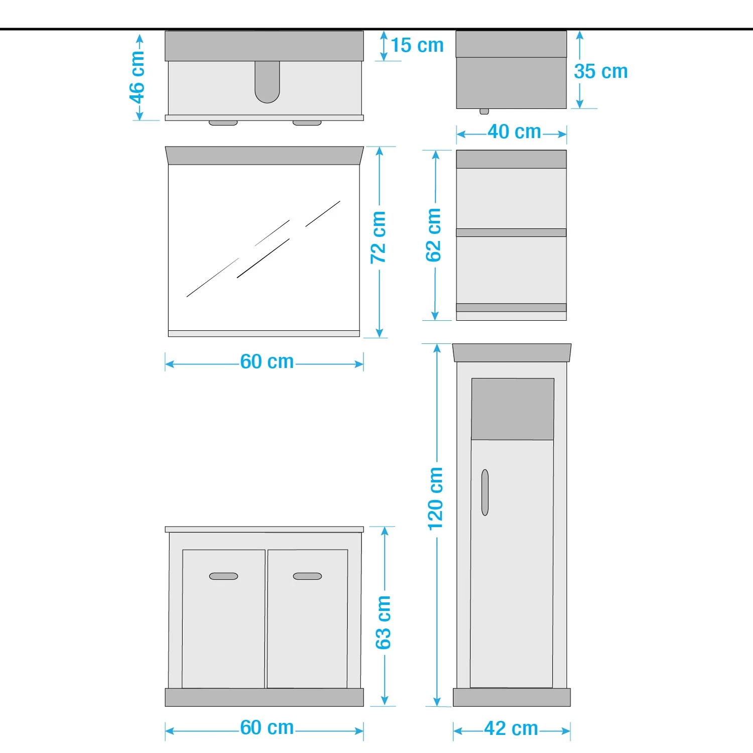 - Contenu de la livraison : Ensemble de salle de bain comprenant 1 meuble sous lavabo, 1 armoire de salle de bain, 1 étagère murale et 1 miroir