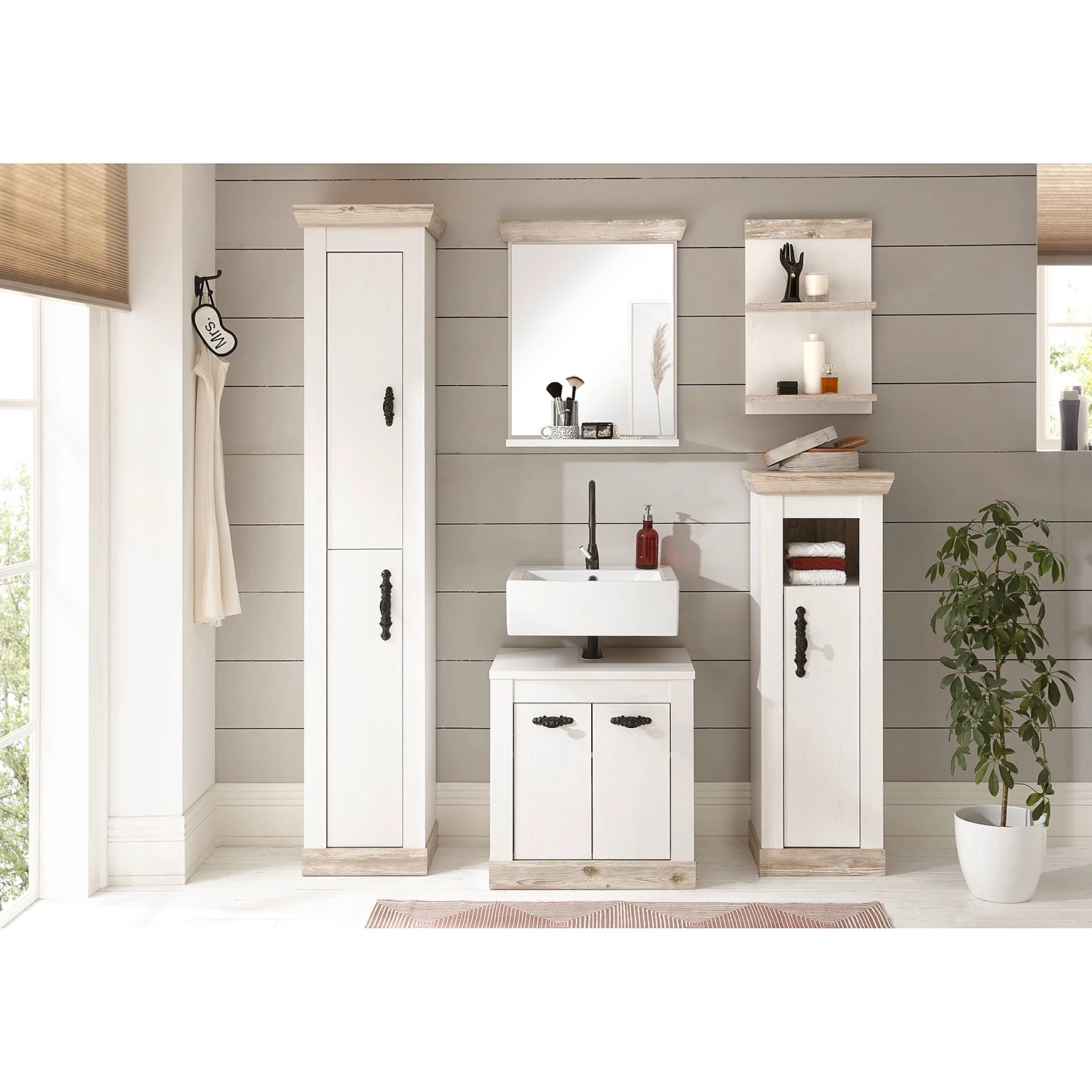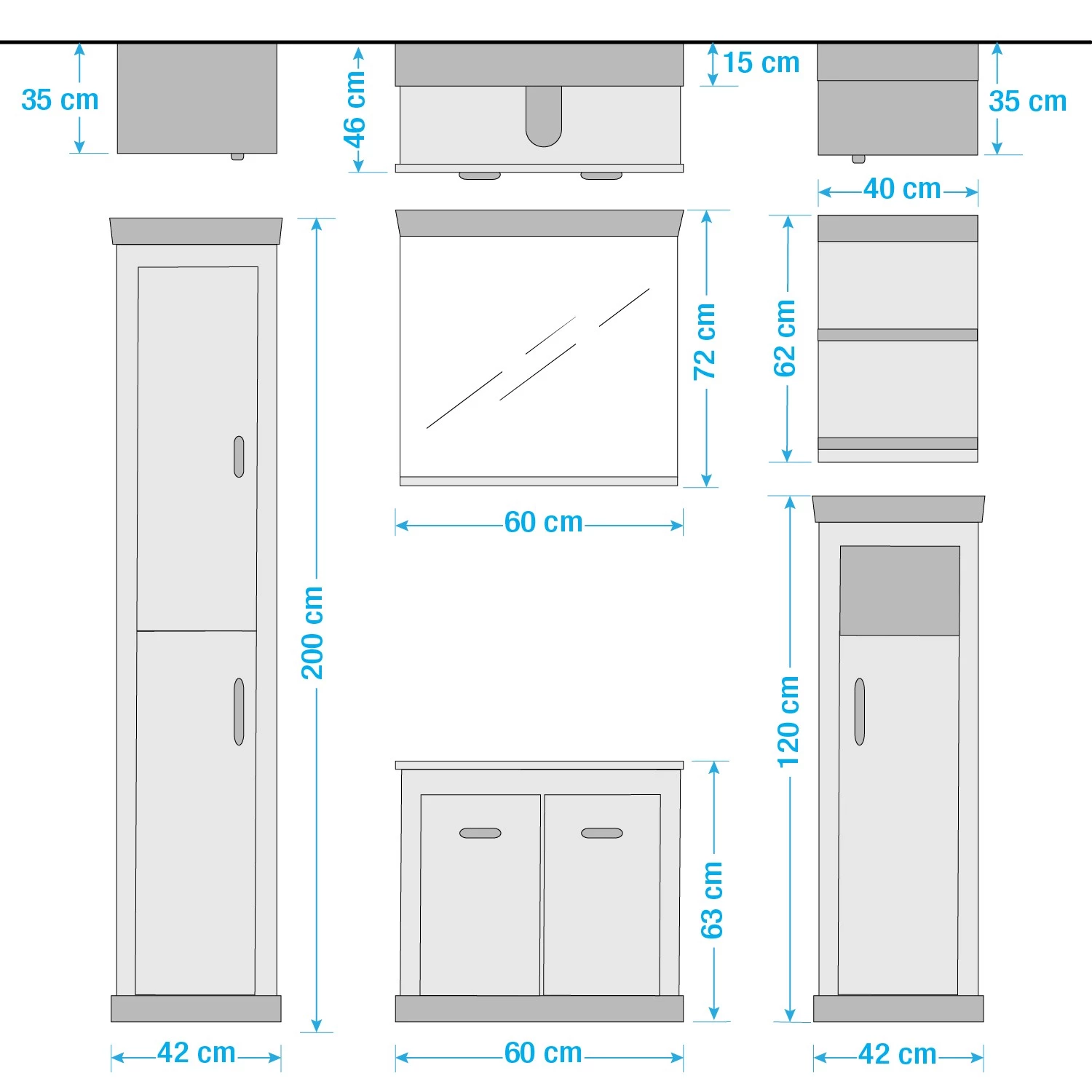 - Contenu de la livraison : Ensemble de salle de bain comprenant 1 meuble sous lavabo, 1 armoire de salle de bain, 1 colonne de salle de bain, 1 étagère murale et 1 miroir