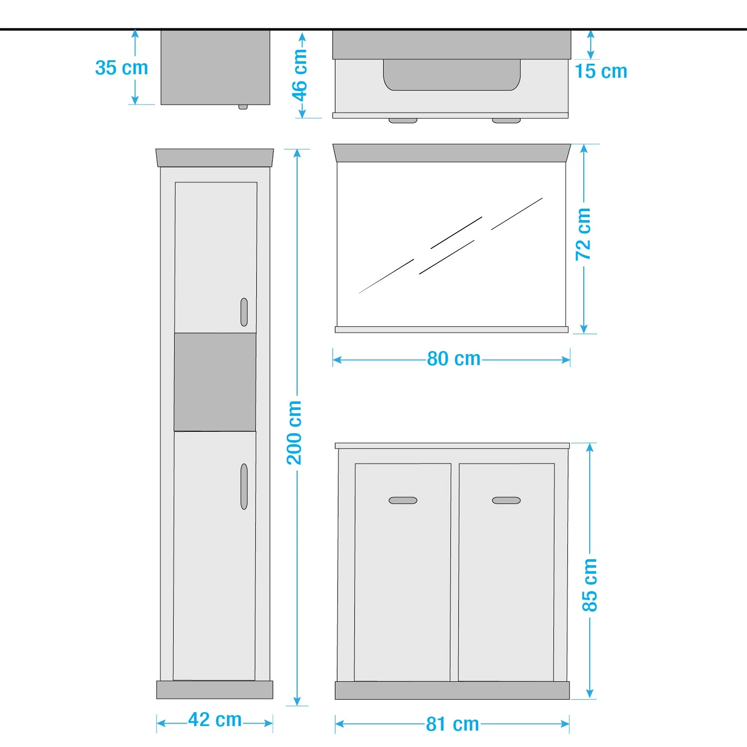 - Colonne de salle de bain (LxHxP) : 42 x 200 x 35 cm
