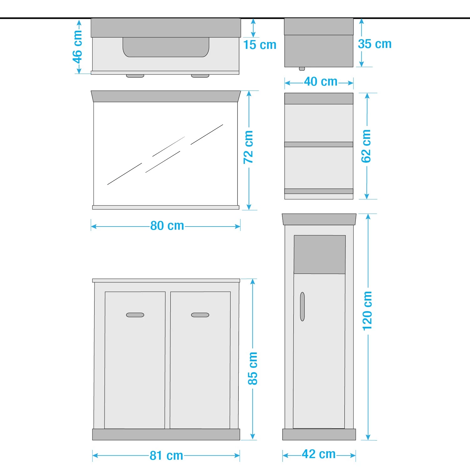 - Armoire de salle de bain (LxHxP) : 42 x 120 x 35 cm