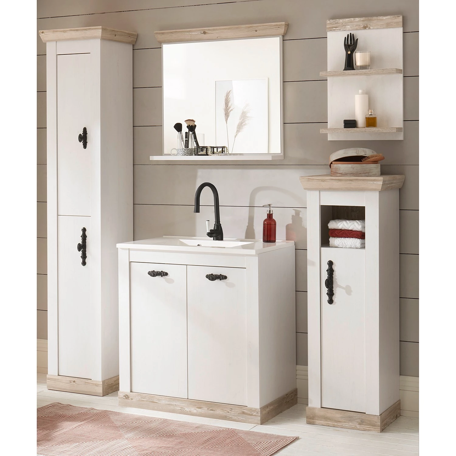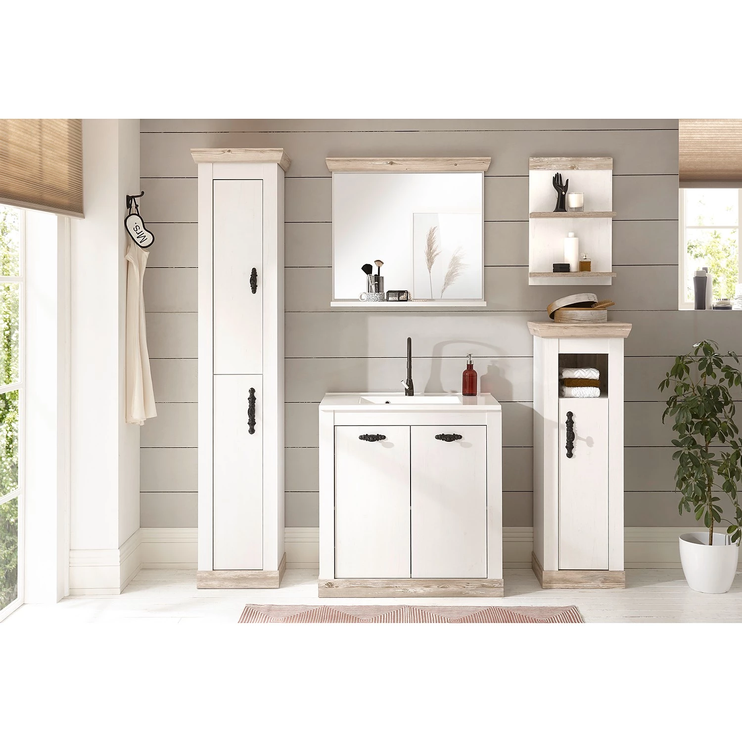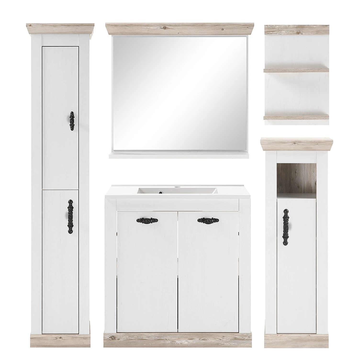 - Contenu de la livraison : Ensemble de salle de bain comprenant 1 meuble avec vasque en fonte minérale, 1 armoire de salle de bain, 1 colonne de salle de bain, 1 étagère murale et 1 miroir